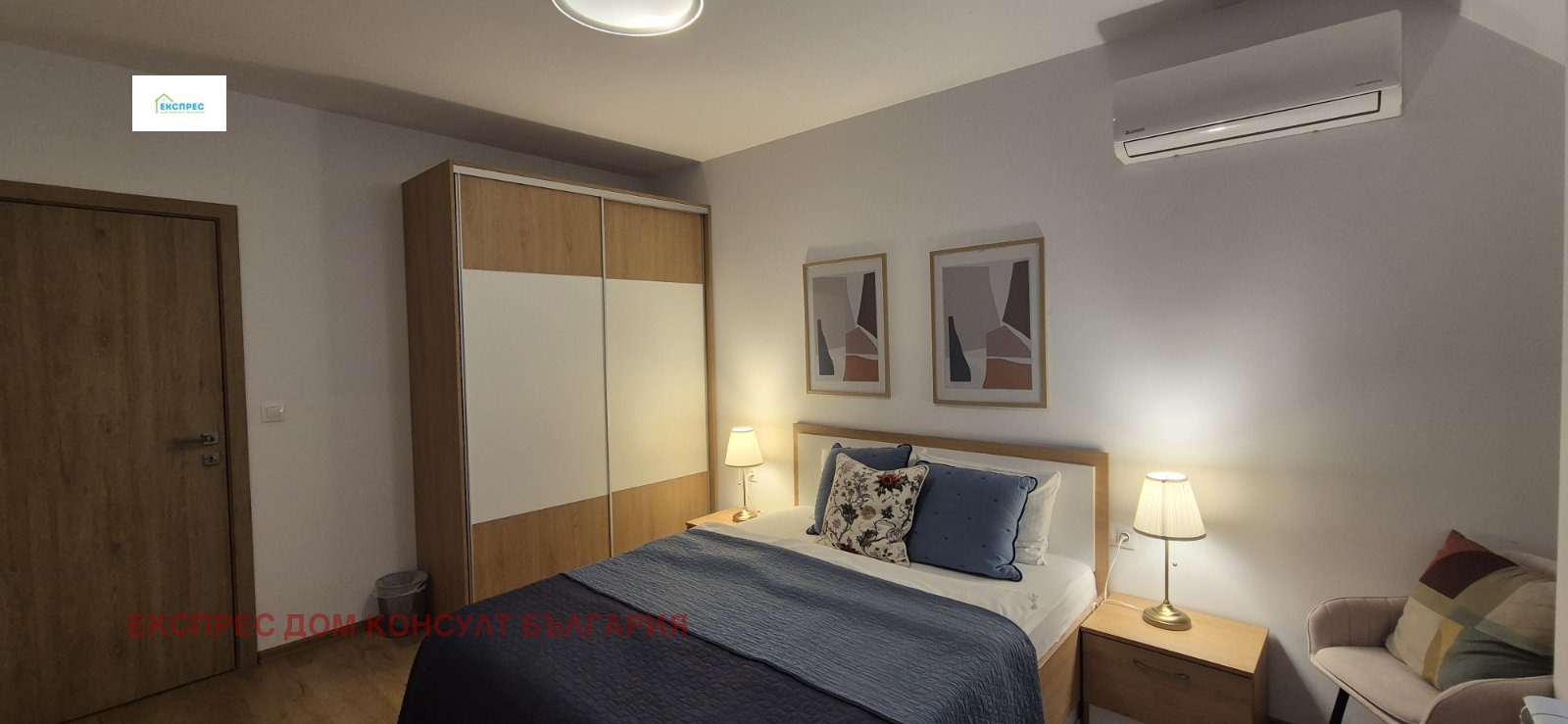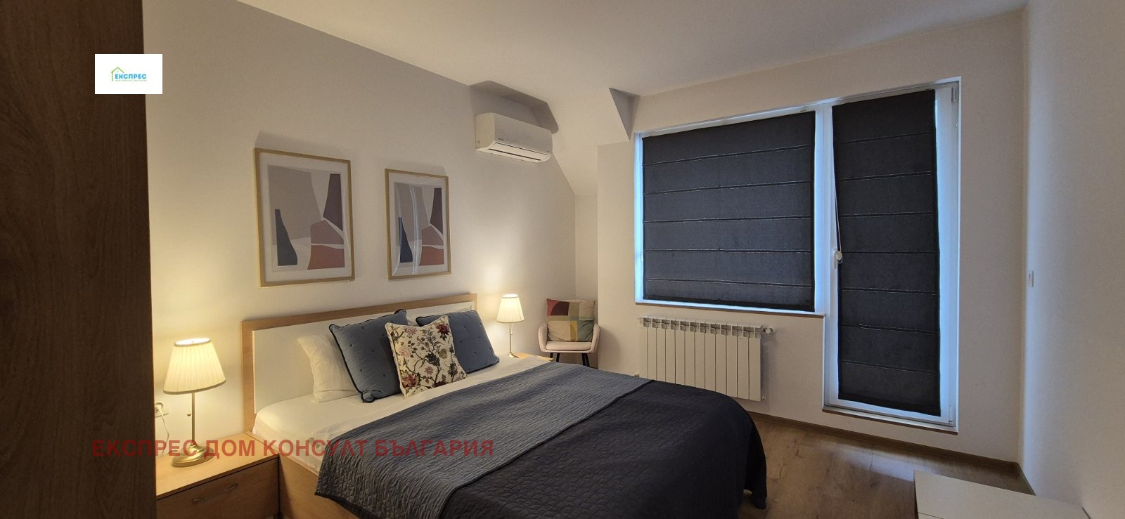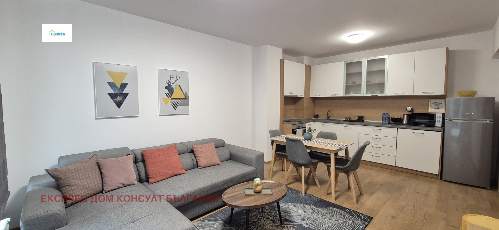 Агенция за недвижими имоти Експрес Дом Консулт България предлага на вашето внимание нов, слънчев, просторен тристаен апартамент на изключително комуникативно място в близост до метростанция, множество спирки на градския транспорт, училища, детски градини,бизнес и административни сгради. Разпределение: входно антре, хол с кухненски бокс и трапезария, две спални, баня с тоалетна, тоалетна за гости, складово помещение, два балкона. Имотът се отдава напълно обзаведен. Кухня с вградени маркови електроуреди, инверторни климатици от висок клас в двете спални. Настилки ламинат, гранитогрес, стени: латекс. Апартаментът се намира в нова тухлена кооперация с контрол на достъпа и луксозни общи части. Възможност за наемане на паркомясто срещу 100 евро. ИМОТЪТ Е СВОБОДЕН ОТ 09.05.2026!!! Предимства: до метростанция, училища, бизнес и административни сгради, магазини, хипермаркети. Ниски консумативни разходи и много други екстри.