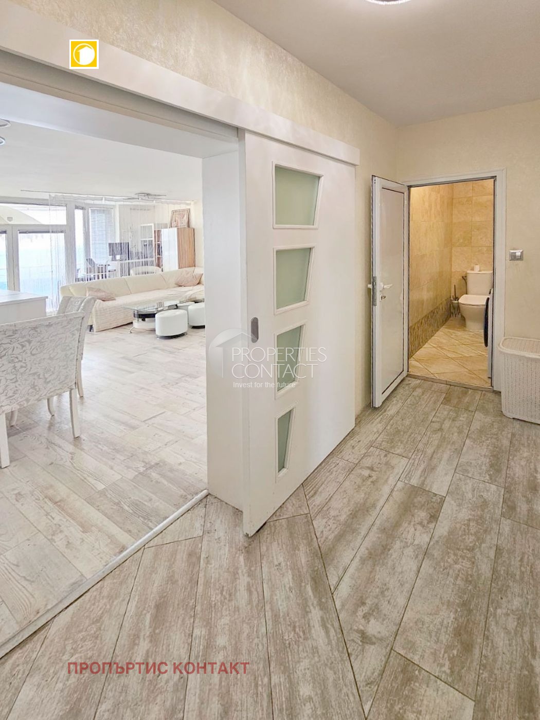 Предлагаме за продажба просторен тристаен апартамент с морска гледка, разположен само на 50 метра от плажа, в престижния жилищен комплекс Оазис. Имотът е с чиста жилищна площ от 114 кв.м, напълно реновиран и луксозно обзаведен, готов за нанасяне или отдаване под наем. Разпределение: просторна дневна с кухня и трапезария с излаз към тераса с гледка море две самостоятелни спални, всяка със собствена баня и тераса трета тоалетна със стирална машина Предимства на имота: две големи тераси, подходящи за целогодишно ползване (затваряне с прозрачни панели) панорамна морска гледка подово отопление в целия апартамент висококачествена топлоизолация луксозни интериорни врати и обзавеждане разположен на 5-ти етаж За комплекса: затворен комплекс с контролиран достъп голям басейн открита фитнес зона / спортна площадка отлично поддържани общи части Имотът е отличен избор както за ваканционен апартамент на морето, така и за инвестиция с висок доход от наем.