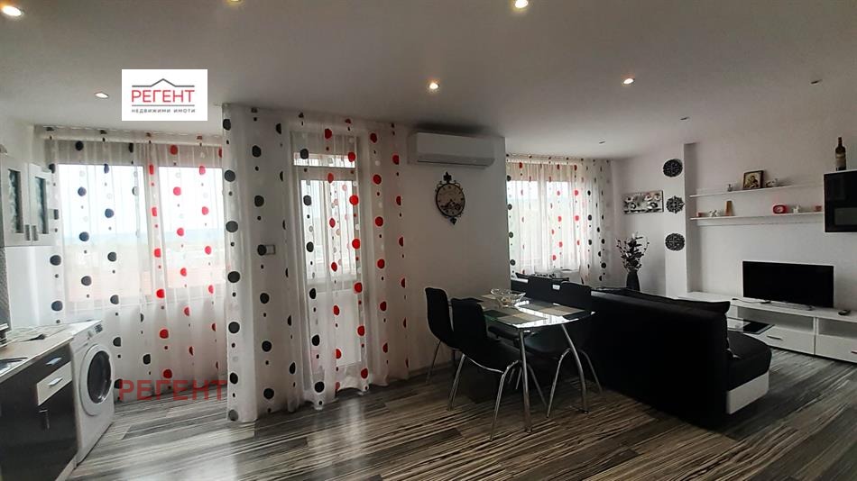 Имотът е с прекрасна локация, с изключителен потенциал, удобно разположение. Отоплението е с климатици, има газ, подменена е дограмата с високо качествена, нови ел. и ВИК инсталации, стените са гладко шпакловани и боядисани с латекс, навсякъде подът е с ламиниран паркет, терасите са с теракота , едната е остъклена, с нова хубава блиндирана входна врата, нови интериорни врати, стилна баня. Общите части са добре поддържани с ограничен достъп. Продава се с обзавеждането. Недвижимият имот е изключително атрактивен, слънчев и приветлив подходящ е за младо семейство или инвестиция.