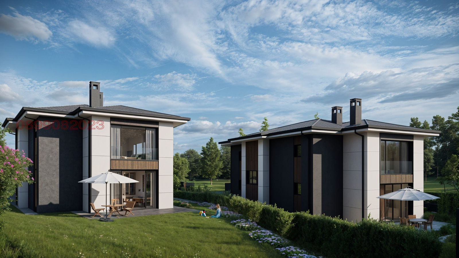 Проекта включва две еднотипни, еднофамилни къщи, всяка с обща разгъната площ (РЗП) от 313.5 кв. м. Всяка къща е проектирана изключително функционално с правилна форма и впечатлява със своята съвременна визия и архитектура. Състои се от три нива едно подземно и две надземни.