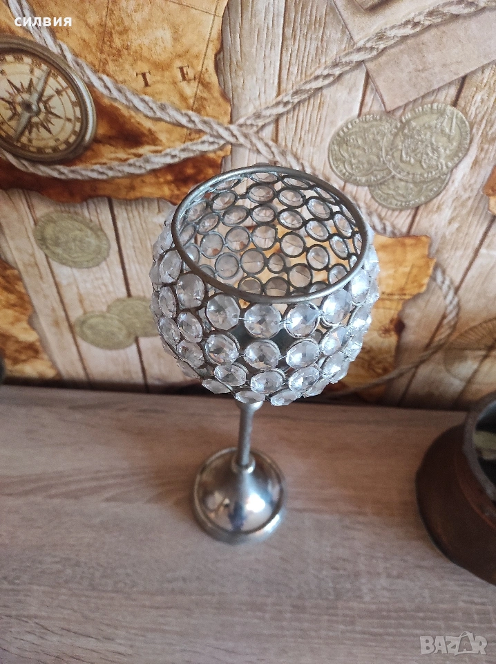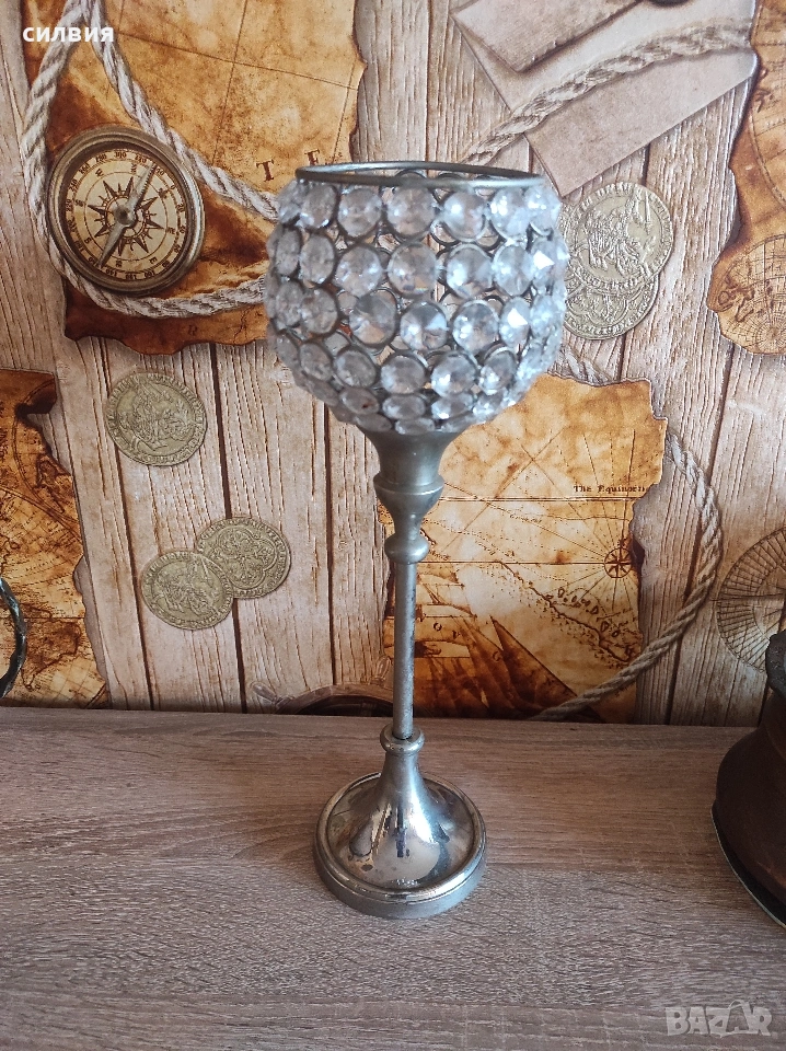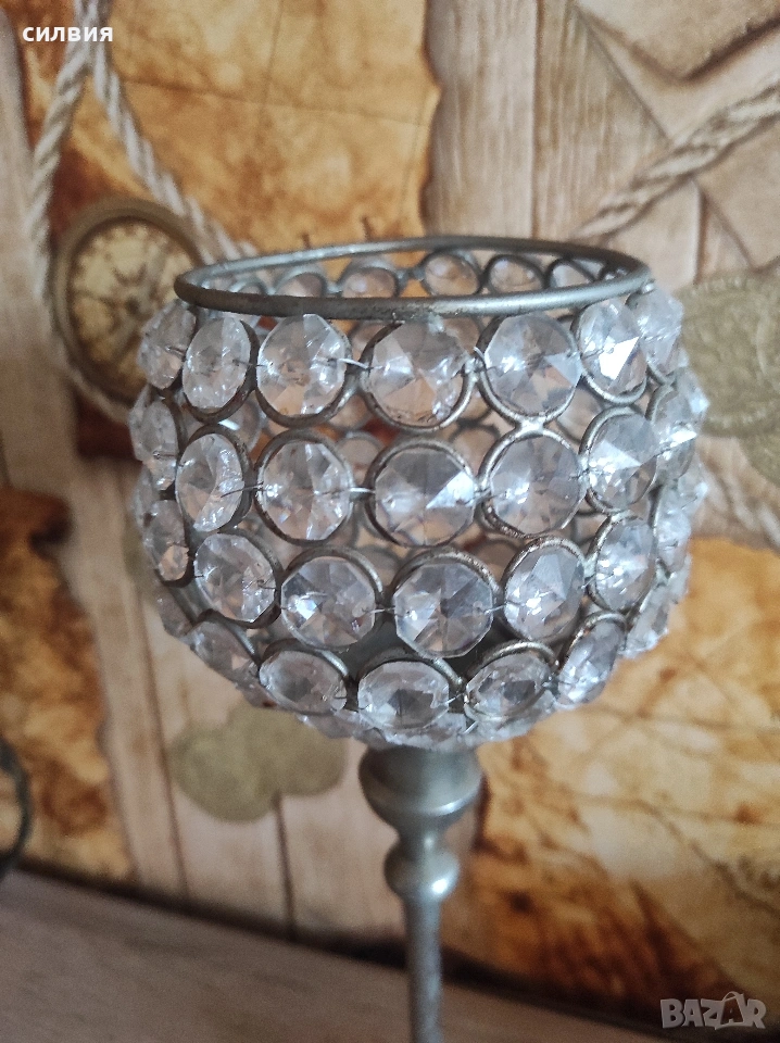 метален свещник с кристали → Обява 54260930