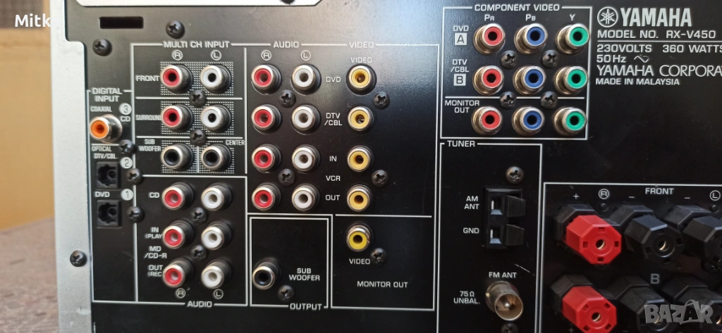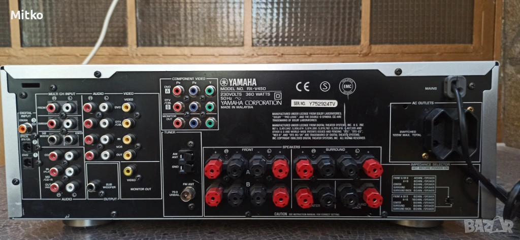 Предлагам един легендарните модели на Yamaha RX-V450 ресийвър / усилвател / 6.1 канала /доказал се с качество и надеждност във времето. Усилвателя свири страхотно в стерео режим за което има доста видеа в нета. Входове с оптика. Работи с тонколони от 4 ома ! Има налично чисто ново дистанционно към него! Внос от Швейцария. Няма нищо ровичкано по него, без ремонти. Външния вид е добър с нормални следи от ползване. Снимките са реални. Много добър FM тунер. Изпращам с Еконт или Спиди с опция преглед и тест. Може да се пробва на място в гр. Хасково.