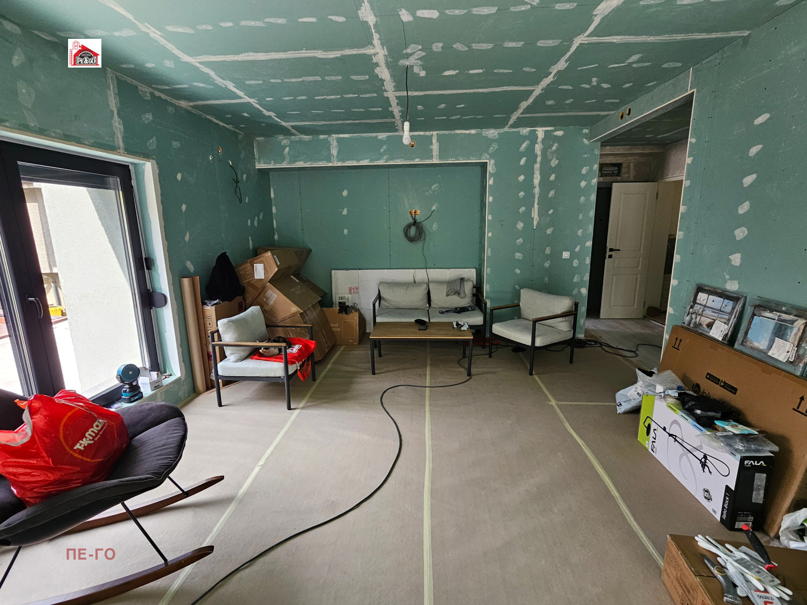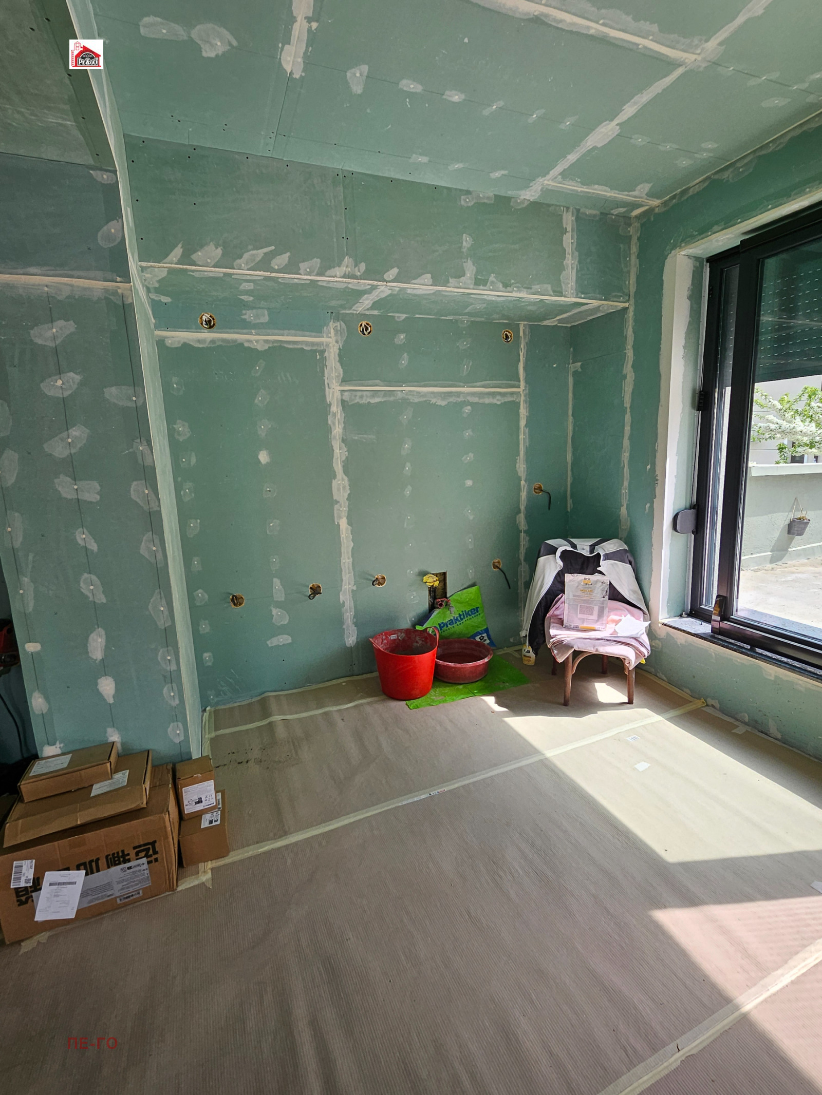 * Вътрешна изолация по стандарт Knauf профили Knauf, двоен гипсокартон + OSB на стените