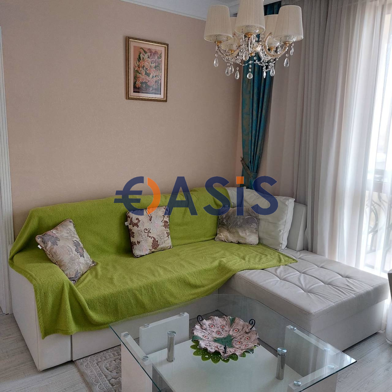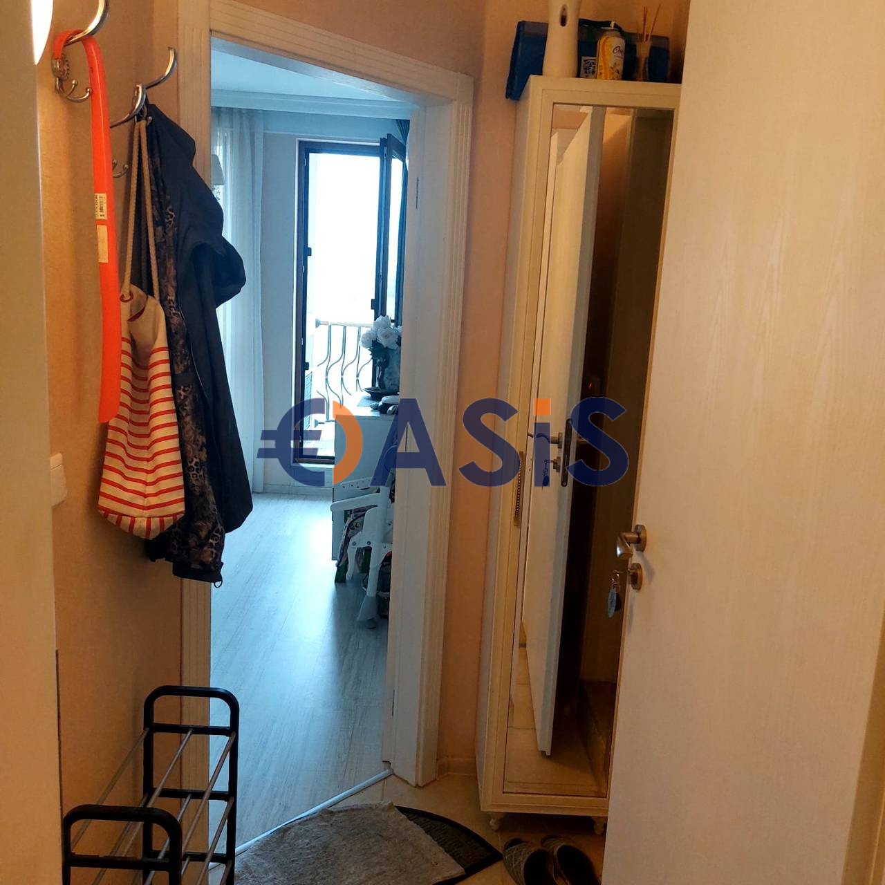 Апартаментът, с обща площ 57 кв. м, се състои от дневна с кухненски бокс, спалня, баня и тераса. Достъп до терасата - от две стаи. Апартаментът се продава напълно обзаведен и оборудван с домакински уреди, един от които 0, модерен климатик в хола и стилен вентилатор на тавана в спалнята, пералня, хладилник, микровълнова печка. Това е включено в цената на апартамента.