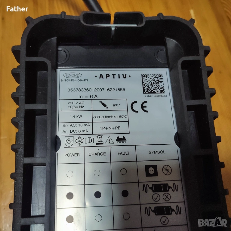 Зарядното е за ел. автомобил BMW. Марката е Aptiv. Става и за други марки. Работи изрядно в отлично състояние.