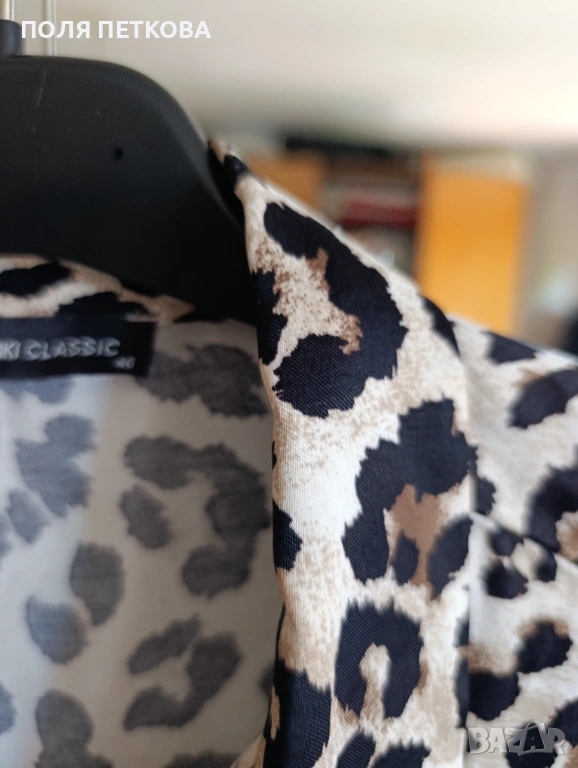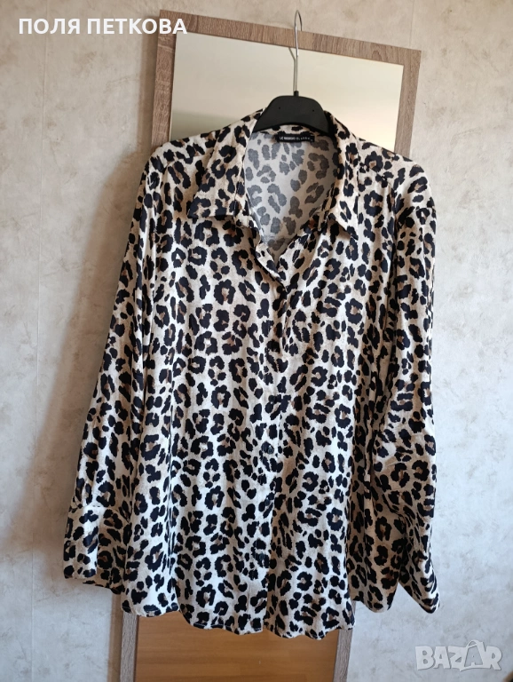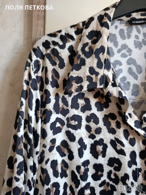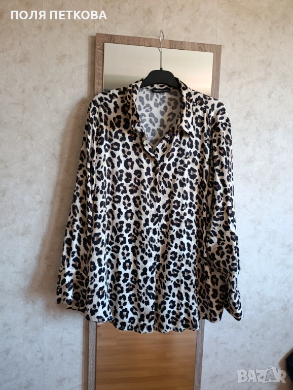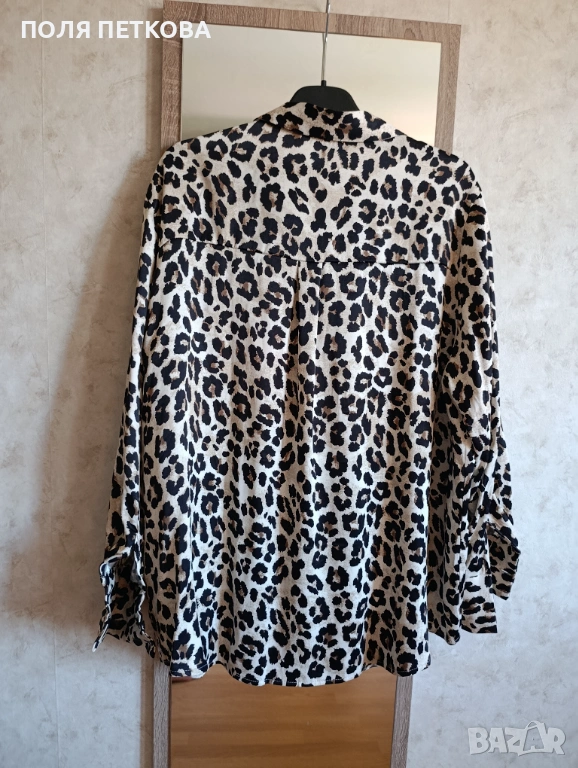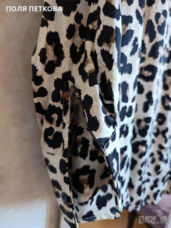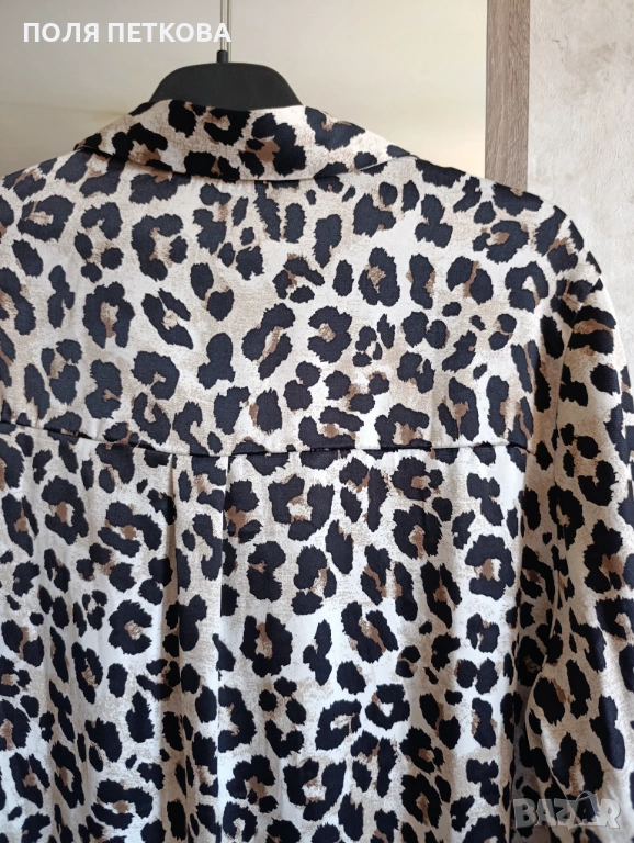 Риза с леопардов принт материя плътен сатен който не се мачка гръдна 125 ханш130 дължина 70 см като размер 46 много добре пада материя без еластан