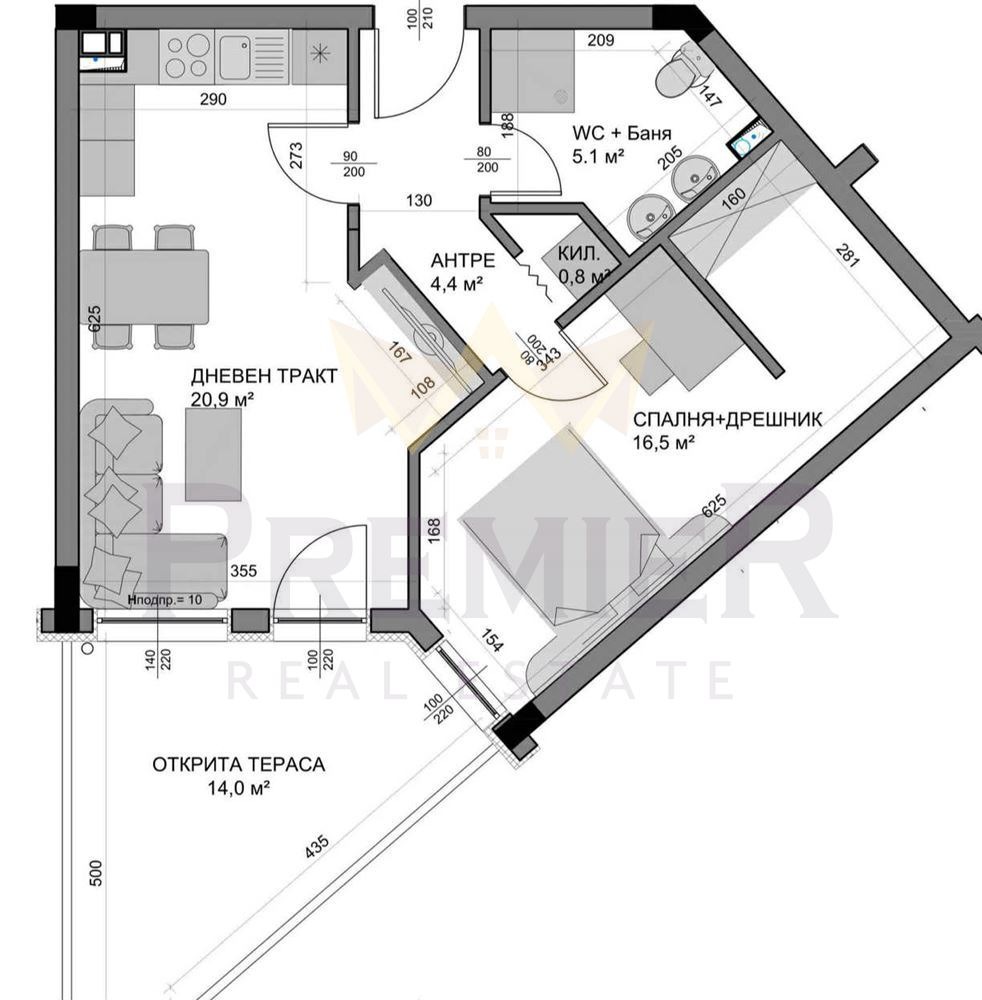 Имоти Премиер представя на Вашето внимание ДВУСТАЕН апартамент в НОВА сграда, в съчетание и хармония между: съвременен и модерен архитектурен стил, висококачествени технологии и материали, функционално проектирани с внимание към детайла жилища, гарантиращи удобство и комфорт за обитателите.