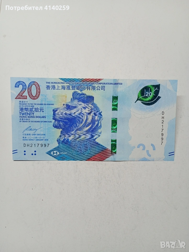 ХОНКОНГ БАНКНОТА 20 ДОЛАРА 2018 Г СЪСТОЯНИЕ НОВО ПОЛУЧАВАТЕ СНИМАНАТА БАНКНОТА РАЗГЛЕДАЙТЕ ДРУГИТЕ МИ ОБЯВИ ДА КОМБИНИРАТЕ ДОСТАВКА ЕКОНТ ЗА ВАРНА ЛИЧНО