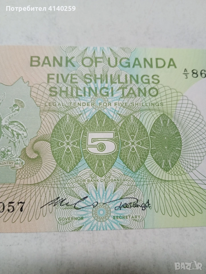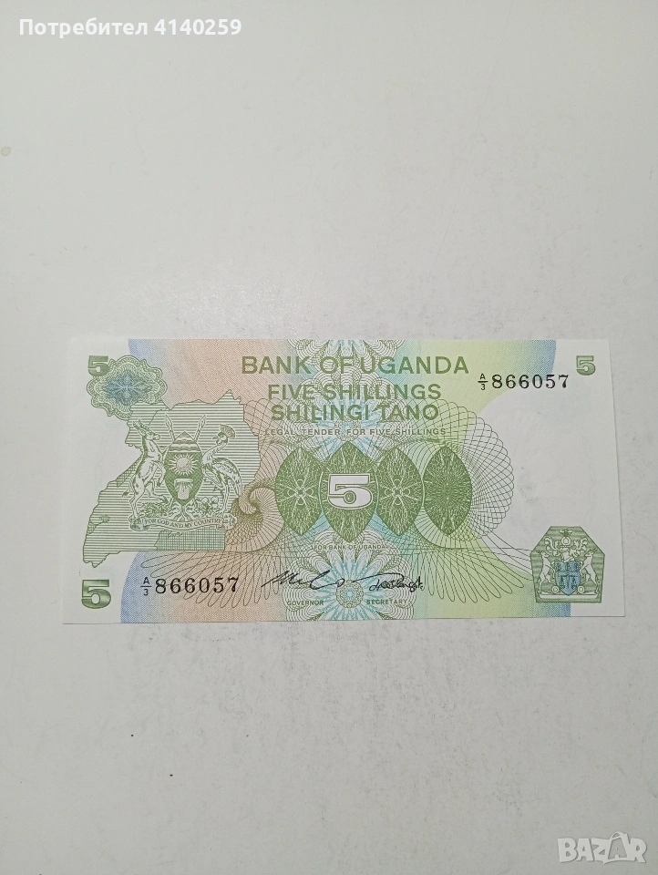 УГАНДА БАНКНОТА 5 ШИЛИНГА 1982 Г СЪСТОЯНИЕ НОВО ПОЛУЧАВАТЕ СНИМАНАТА БАНКНОТА РАЗГЛЕДАЙТЕ ДРУГИТЕ МИ ОБЯВИ ДА КОМБИНИРАТЕ ДОСТАВКА ЕКОНТ ЗА ВАРНА ЛИЧНО