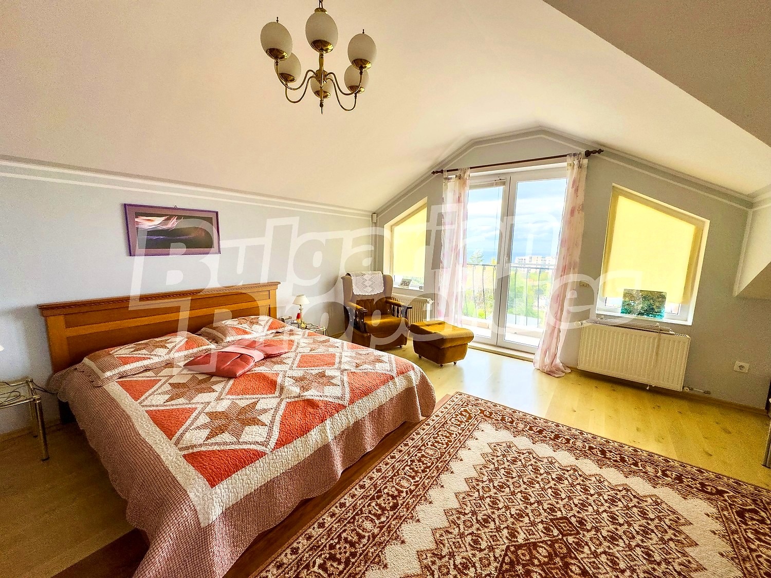 Етажът предлага комфортно жилищно пространство за целогодишно обитаване, като големият балкон е подходящ за отдих и хранене на открито.