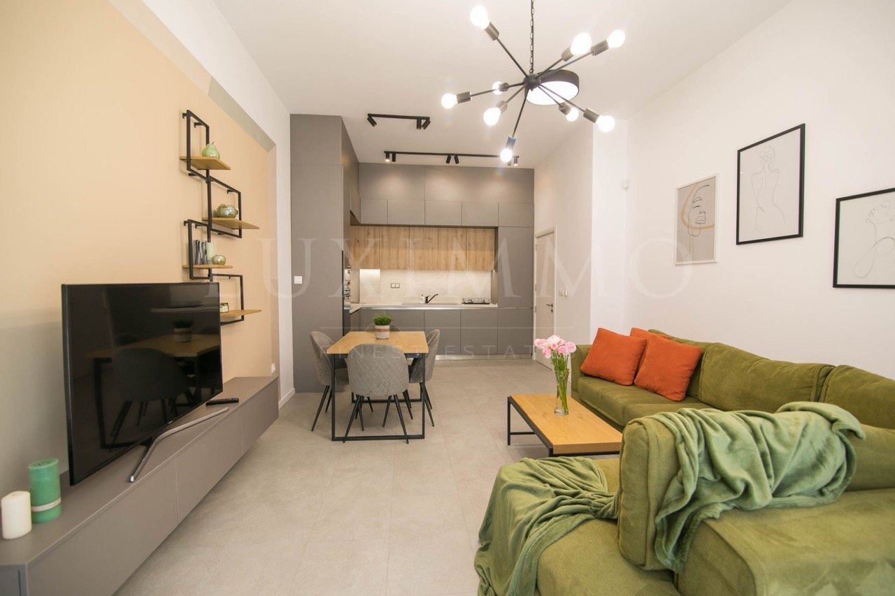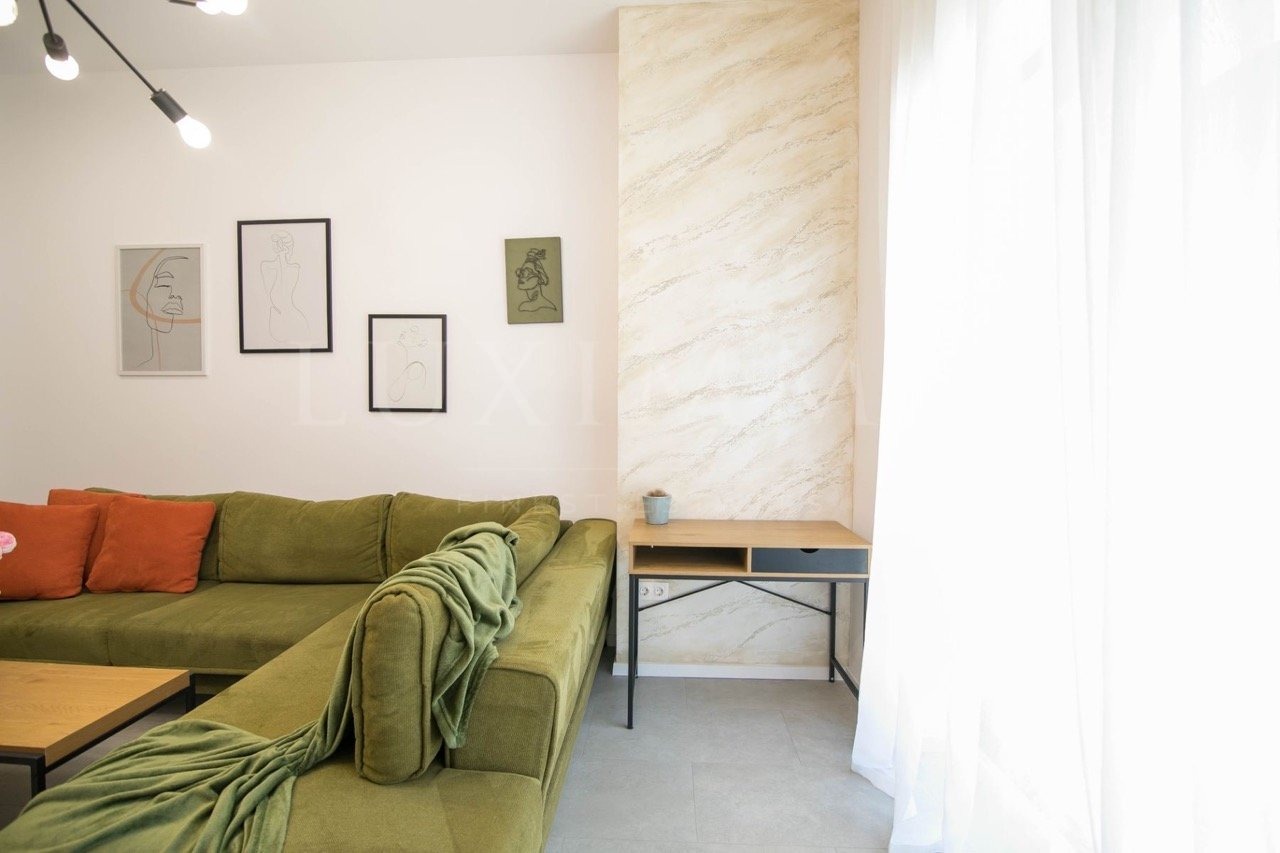 Имаме удоволствието да Ви предложим под наем стилен и уютен двустаен апартамент, отличаващ се с високи тавани, дизайнерско обзавеждане и самостоятелен двор с излаз от всяко помещение. Жилището е разположено в престижния затворен комплекс SoHome Residential Park.