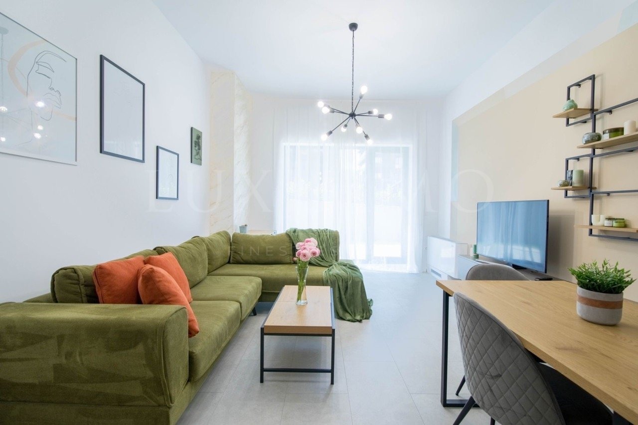 Апартаментът се намира на партерен етаж и разполага с прилежаща дворна тераса с площ от 30 кв.м (не е включена в общата квадратура), която предоставя отлични условия за отдих на открито.