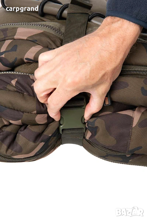 - Вграден, сваляем спален чувал с камуфлажен дизайн, подходящ за 4 сезона, с пълна поларена подплата и термо преграда за задържане на топлината.