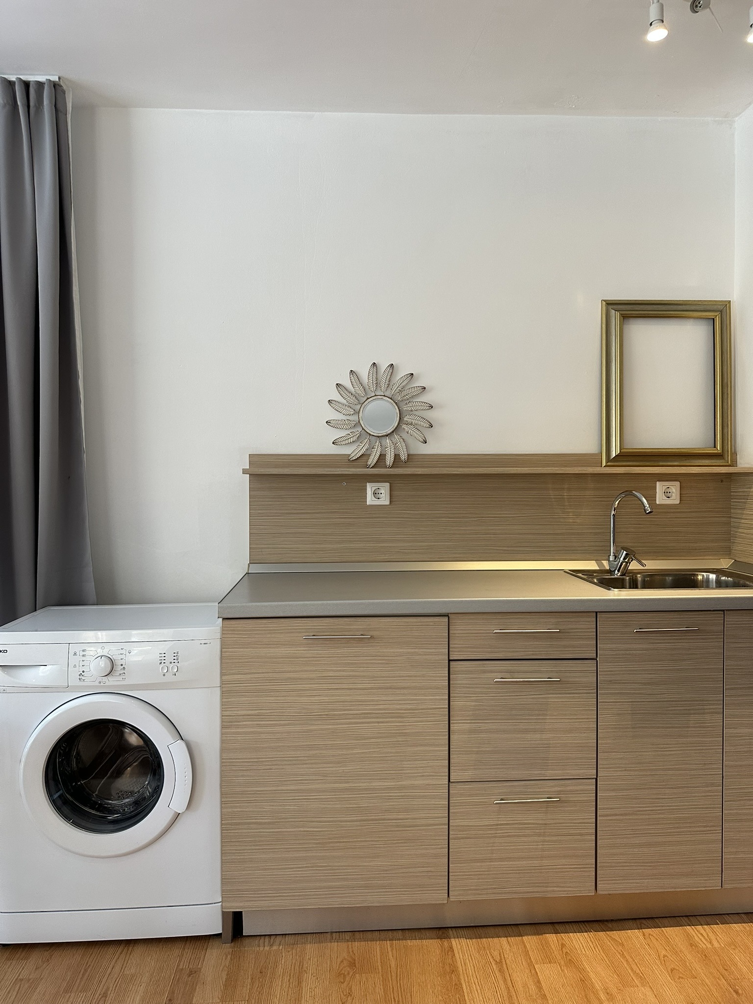 Предлага се изцяло обзаведено и оборудвано еднопространствено жилище, след освежителен ремонт, очакват се и нови мебели /гардероб, нов диван/. Към жилището има балкон от 100 кв.м. Разпределението е: