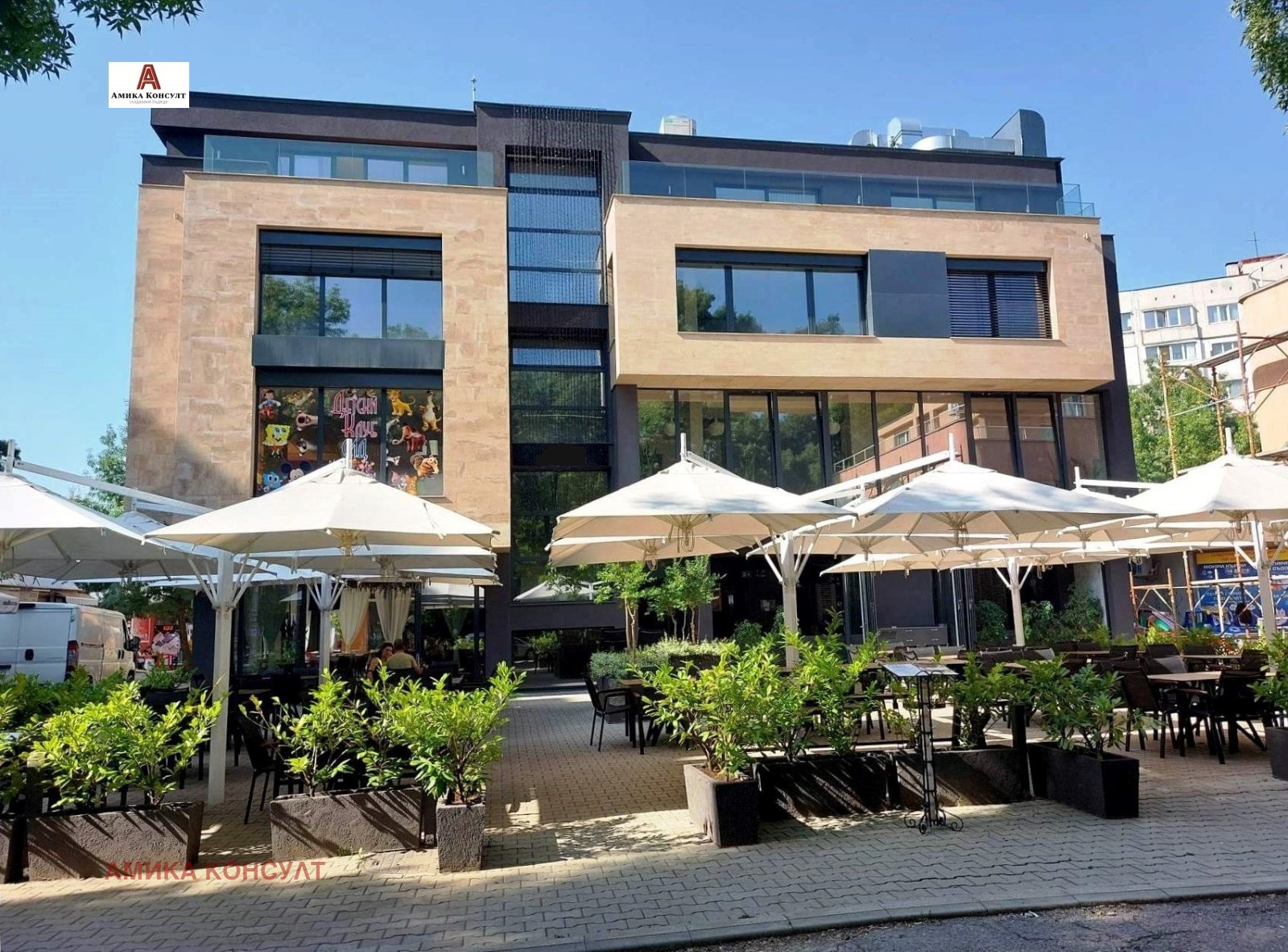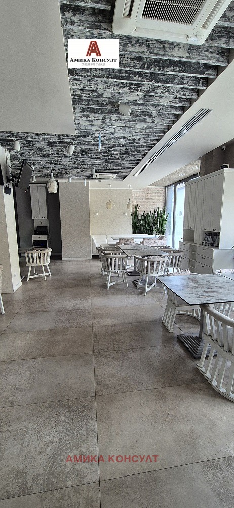 Предлагаме на Вашето внимание нашата най добра оферта за напълно оборудвано, и климатизирано работещо заведение с всички необходими разрешителни- категоризация находящо се в самостоятелна офис сграда!!! Заведението е разположено на три нива, като има следното разпределение: Сутерен-напълно оборудвана кухня със всичко необходимо за работа, складови помещения, офис, 3бр.санитарен възел, Vip зала за частни мероприятия разполагаща с 20 бр. седящи места, стълбище, асасньор, авариен изход, техническо помещение. 1-Ви етаж на кота 0,00 метра-партер: Основна зала със зимна градина разполагаща с около 100 бр. седящи места, санитарен възел, авариен изход, стълбище, асансьор, вход за зареждане, лятна градина разполагаща с около 110 бр. седящи места: 2-ри етаж: Основна зала с около 50бр.седящи места, авариен изход, стълбище, асансьор, Детски клуб, 4бр. санитарни помещения, балкон, тоалетна за инвалиди. Заведението материализира визията за модерно градско луксозно изпълнение, функционалност и удобство, спокойствие и сигурност, зелена околна среда и комуникативно местоположение с 24 часово видеонаблюдение !!! Огледи с предварителна уговорка и подписване на протокол за оглед !!!