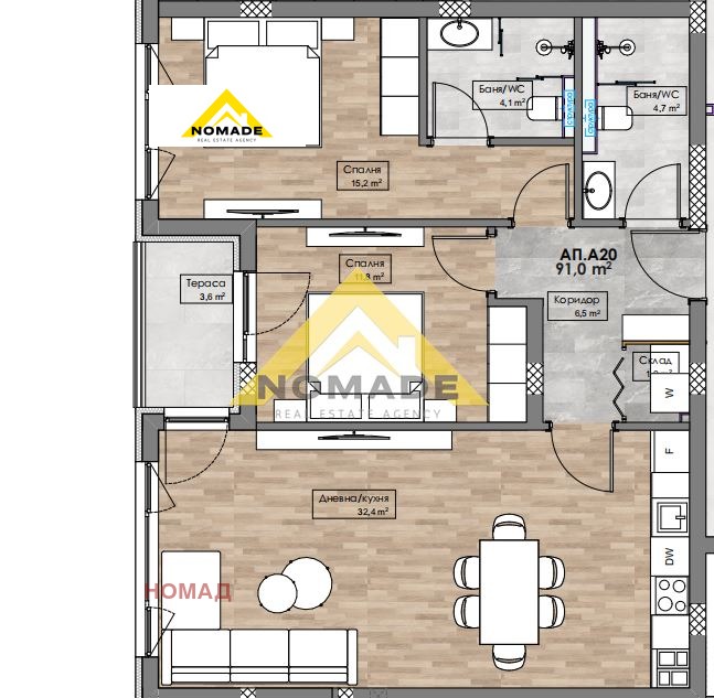 Агенция за недвижими имоти 'Номад' представя на Вашето внимание тристаен апартамент 107 кв.м. в луксозен нов комплекс намиращ се в кв. Кършияка.