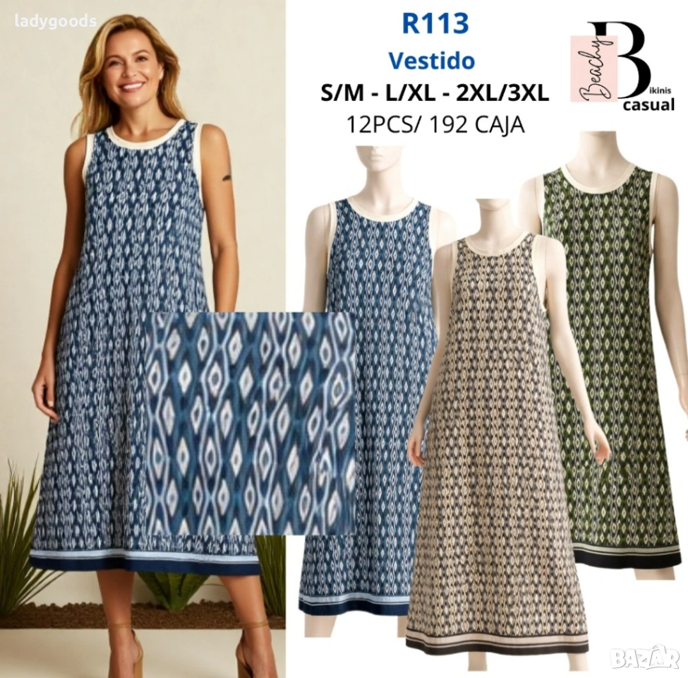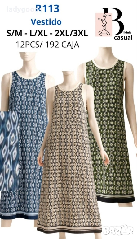 Дамска плажна рокля,от лен и вискоза,идеален избор за жени, които търсят комфорт, свобода на движение и впечатляваща лятна визия. Моделът е с широк, свободен силует,стои красиво и не прилепва по тялото.Това я прави изключително подходяща, за горещите дни и носене върху бански. Материята включва 60% вискоза, 30% лен и 10% еластан.