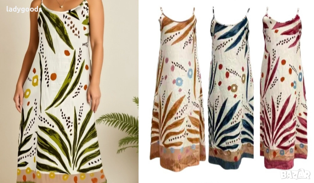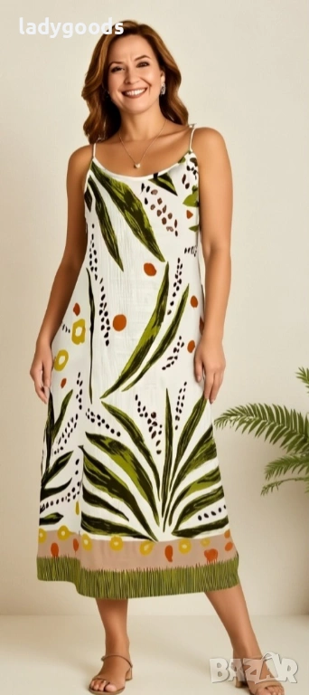 Дамска плажна рокля, от лен и вискоза, идеален избор за жени, които търсят комфорт, свобода на движение и впечатляваща лятна визия. Моделът е с широк, свободен силует, стои красиво и не прилепва по тялото. Това я прави изключително подходяща, за