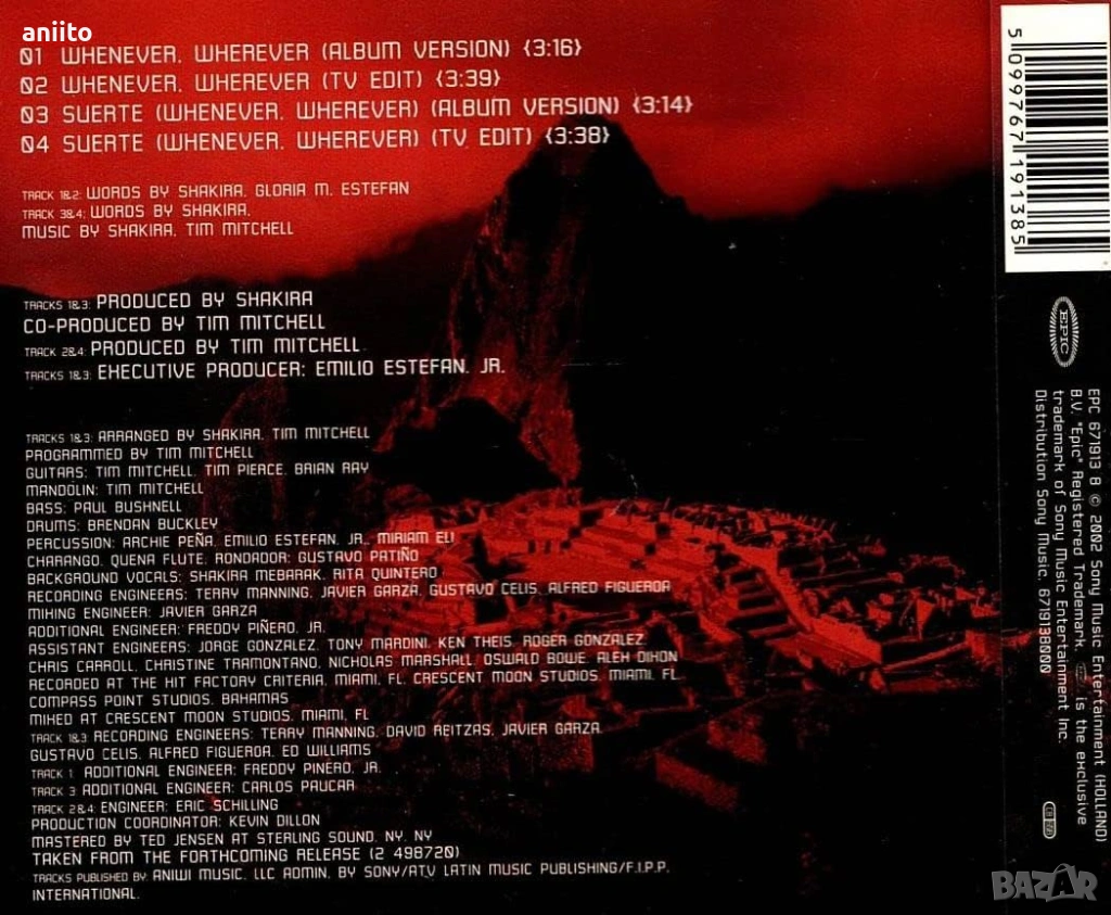 Shakira: Whenever Wherever [CD-Single, Epic, снимка 1 - CD дискове - 54265659 Shakira: Whenever Wherever [CD-Single, Epic, снимка 2 - CD дискове - 54265659 1/2