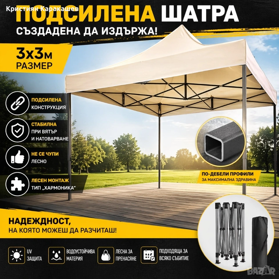 Сгъваема Шатра 3х3м - Тип хармоника ПОДСИЛЕНА 21кг