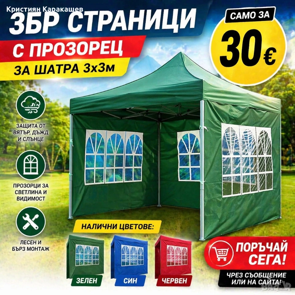 Допълнете и защитете вашата шатра с практична страница с прозорци, която съчетава функционалност и стил. Тя осигурява отлична защита от атмосферни условия, като същевременно пропуска естествена светлина благодарение на прозрачните си панели. Идеално решение за създаване на по-уютно, светло и защитено пространство при всякакви събития на открито.
