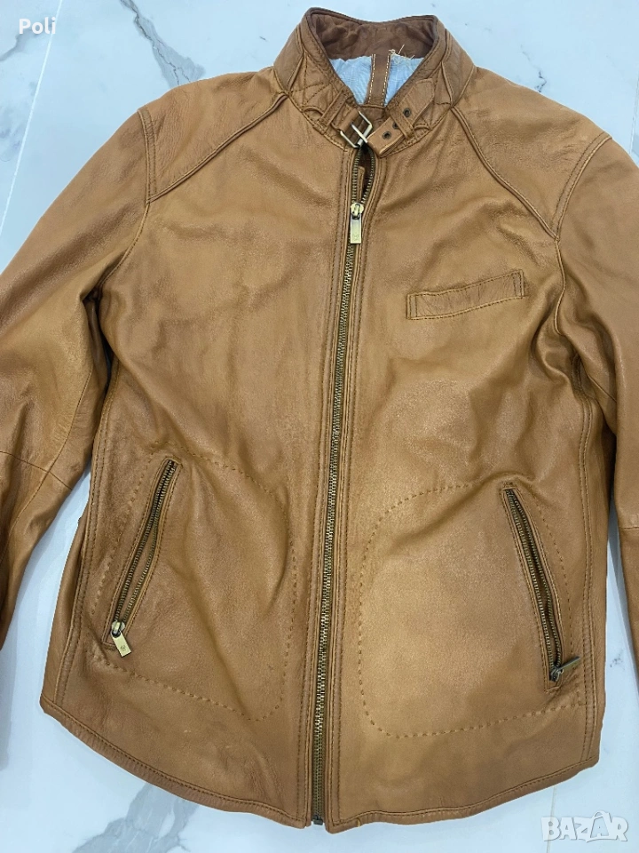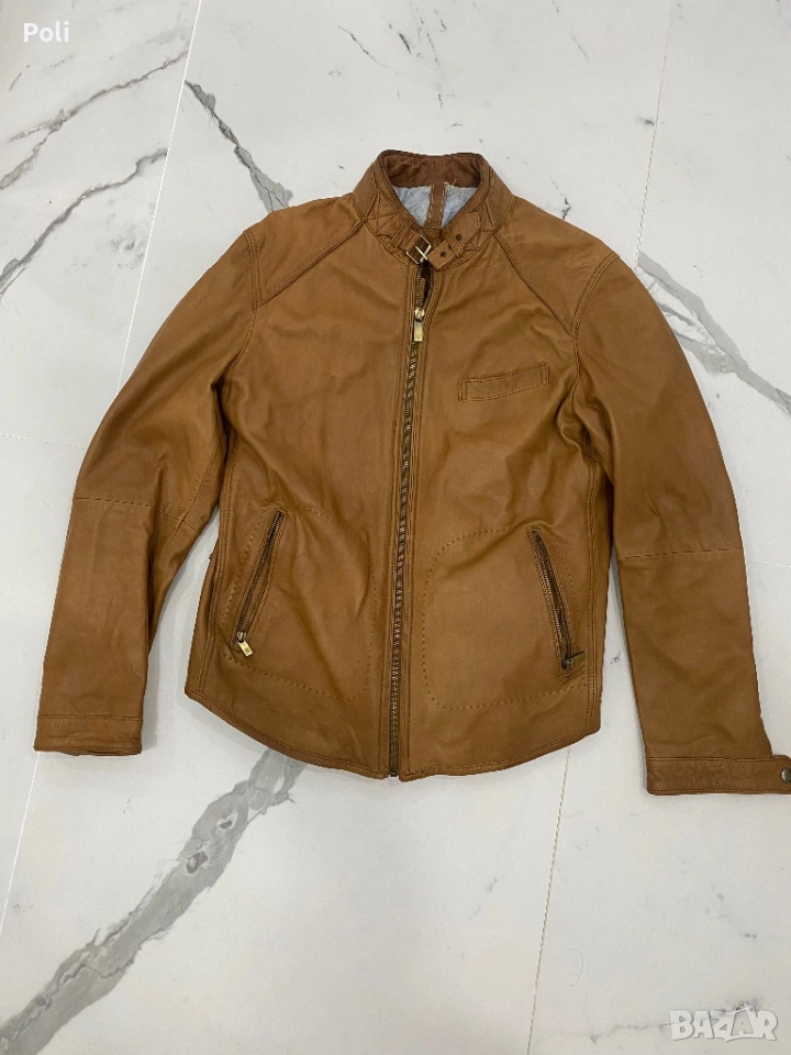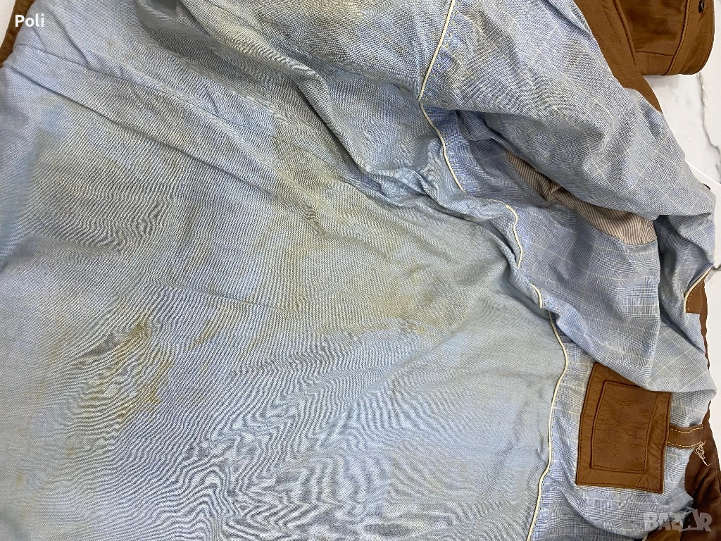 Яке от естествена кожа. Цената е съобразена със забележките. Има оцветяване на подплатата. С едно химическо и боядисване ще е като ново.