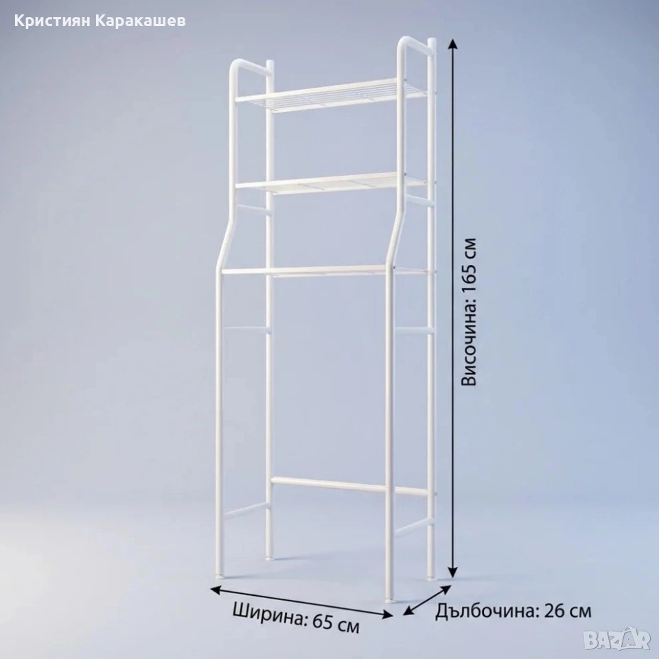 Етажерката с 3 рафта съчетава стил и функционалност, идеална за поставяне над пералня, сушилня или в банята.