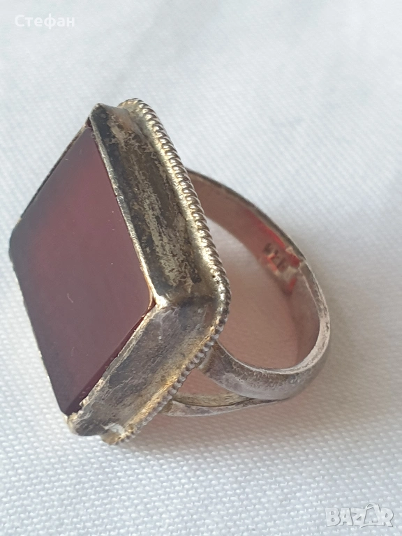 Сребърен пръстен с карнеол в перфектно състояние,сребро проба -