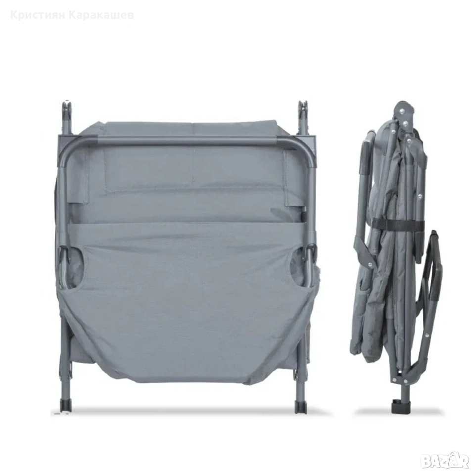 Здравата стоманена рамка гарантира стабилност и дълъг живот на продукта, а сгъваемият механизъм позволява бързо и лесно пренасяне. Благодарение на фиксиращата лента, шезлонгът е удобен за транспорт и съхранение.