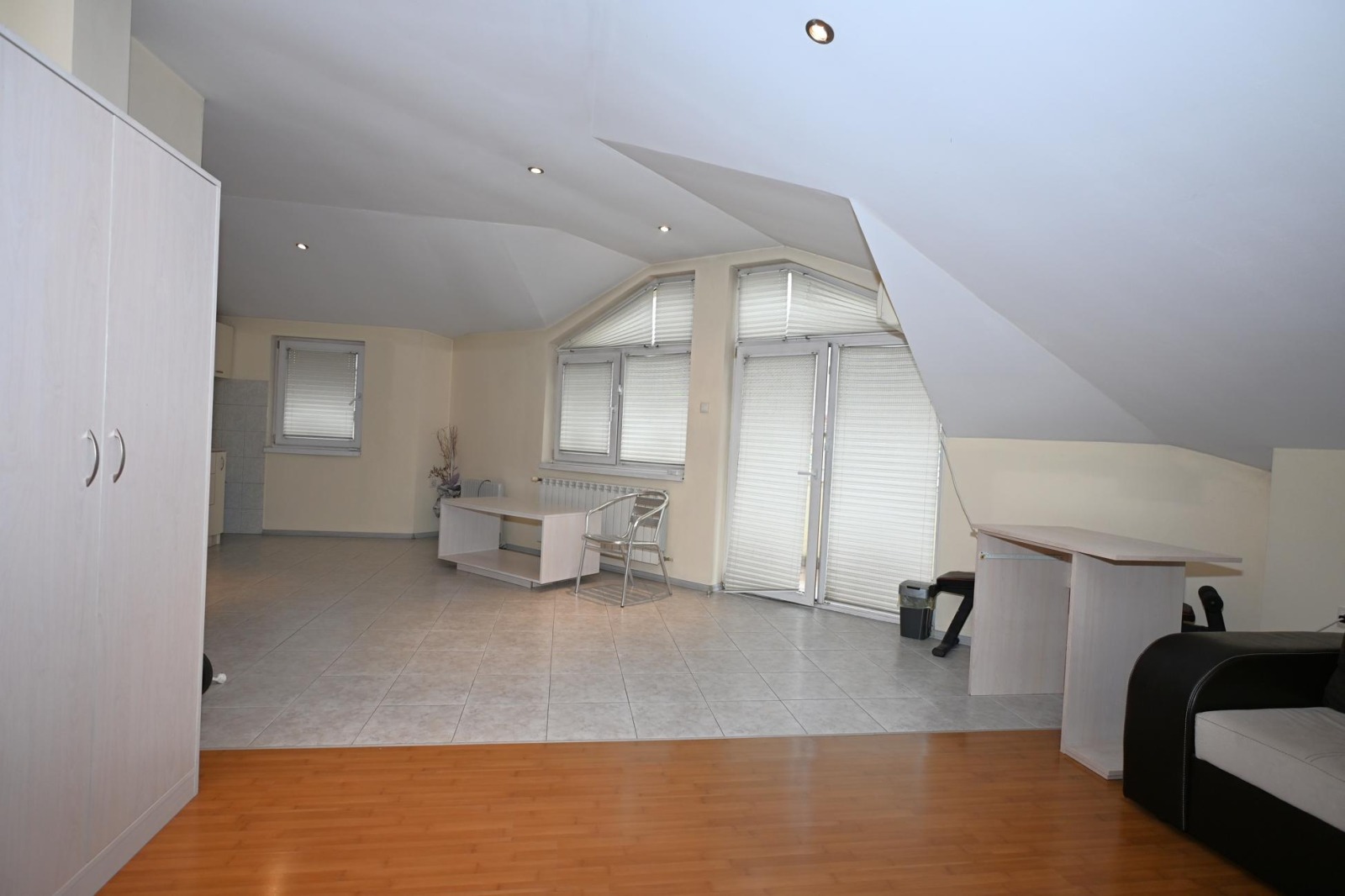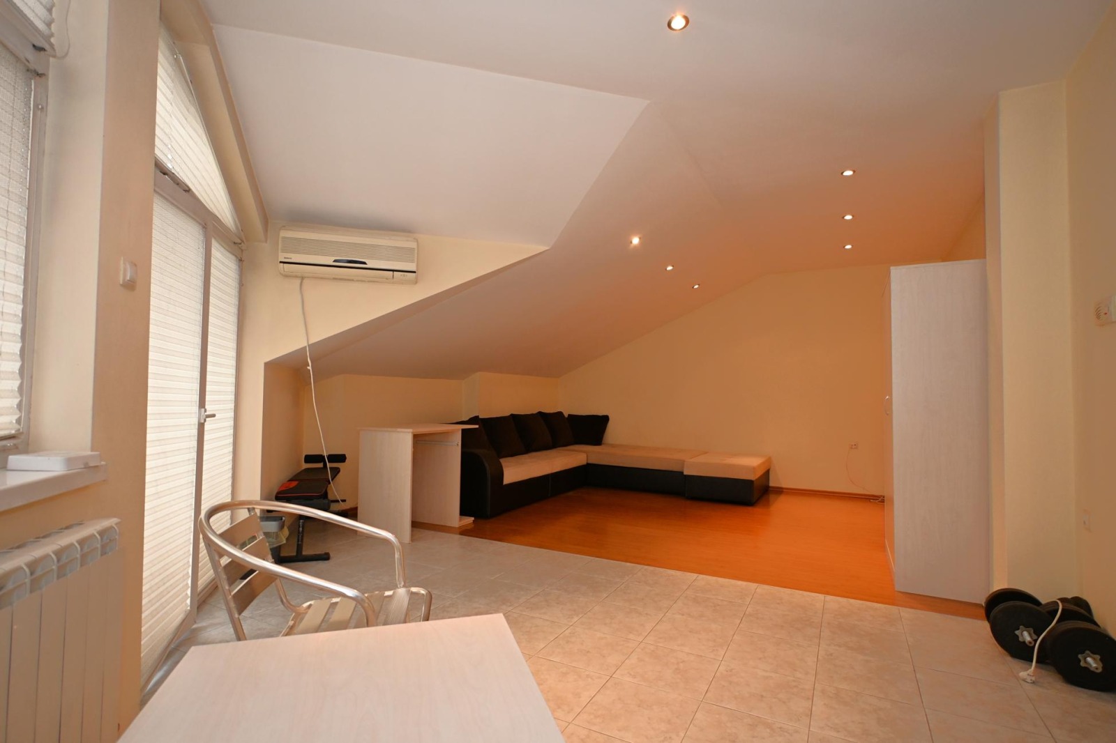 Агенция ЖОКИ предлага на своите клиенти един различен и нетрадиционен, обширен, двустаен тухлен апартамент в гр. Перник, кв. Димова махала, /с възможност за преустройство в тристаен/, площ 107.98 кв. м., от които 95.92 кв. м. е жилището и 12.06 кв. м. са общите части, разположен на 4ти етаж /трети жилищен/ в малка четириетажна жилищна сграда с разрешение за ползване от 2007 година, със собствен парцел с контролиран достъп, заграден и облагороден. Разпределение: коридор, дневна с трапезария и кухня с южна тераса, голяма спалня с джакузи и тераса, баня с тоалетна, втора тоалетна. Подове с гранитогрес и ламиниран паркет, стени с шпакловка и латекс, интериорни врати, алуминиеви радиатори, ПВЦ дограма, баня и тоалетна с фаянс и теракот. Обзавеждането и климатика са подарък! В цената са включени и прилежащото мазе с площ 9 кв. м. и 1/6 идеална част от парцела, целият с площ от 710 кв. м.. Сградата е с централен ТЕЦ и собствена абонатна станция, соларни панели за подгряване на водата и хидрофорна система. Контролиран достъп до парцела и сградата. Отлична локация, в близост до спирки за София и центъра, училища и супермаркети. За клиенти на агенцията!
