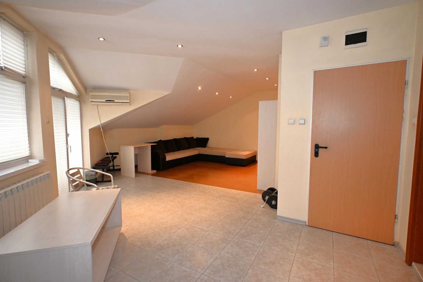 Агенция ЖОКИ предлага на своите клиенти един различен и нетрадиционен, обширен, двустаен тухлен апартамент в гр. Перник, кв. Димова махала, /с възможност за преустройство в тристаен/, площ 107.98 кв. м., от които 95.92 кв. м. е жилището и 12.06 кв. м. са общите части, разположен на 4ти етаж /трети жилищен/ в малка четириетажна жилищна сграда с разрешение за ползване от 2007 година, със собствен парцел с контролиран достъп, заграден и облагороден. Разпределение: коридор, дневна с трапезария и кухня с южна тераса, голяма спалня с джакузи и тераса, баня с тоалетна, втора тоалетна. Подове с гранитогрес и ламиниран паркет, стени с шпакловка и латекс, интериорни врати, алуминиеви радиатори, ПВЦ дограма, баня и тоалетна с фаянс и теракот. Обзавеждането и климатика са подарък! В цената са включени и прилежащото мазе с площ 9 кв. м. и 1/6 идеална част от парцела, целият с площ от 710 кв. м.. Сградата е с централен ТЕЦ и собствена абонатна станция, соларни панели за подгряване на водата и хидрофорна система. Контролиран достъп до парцела и сградата. Отлична локация, в близост до спирки за София и центъра, училища и супермаркети. За клиенти на агенцията!
