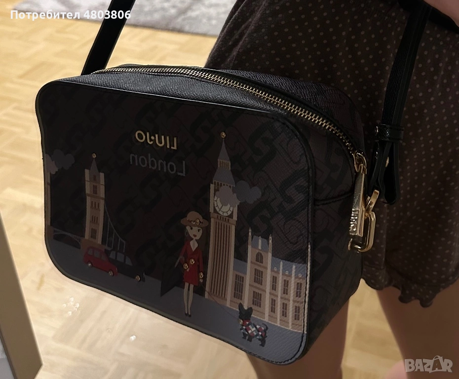 Черна чанта от марката Liu Jo с лондонски дизайн, използвана,без забележки . Дължината на дръжката е регулируема.