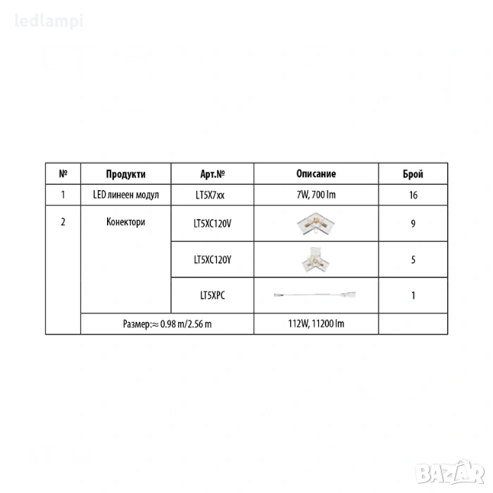 - LED линеен светлинен източник, с мощност 112W и студена или неутрална (6000/4000K) светлинa.