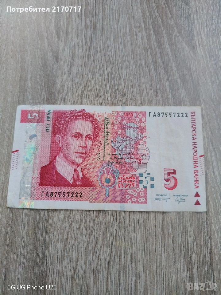 Банкнота 5 лева 2020 година → Обява 54268087