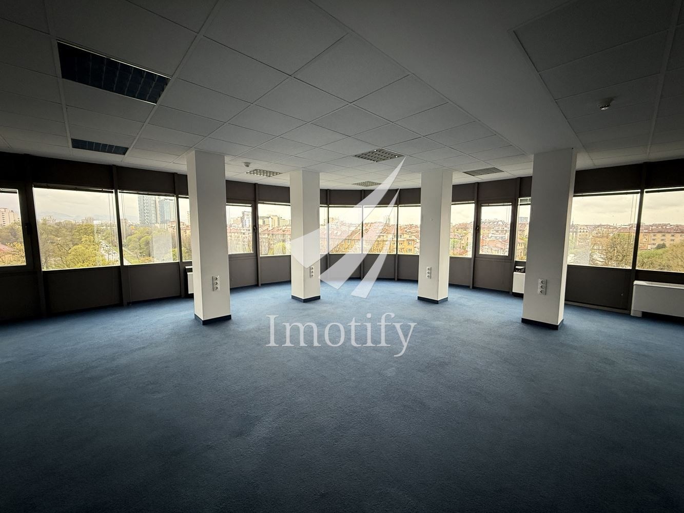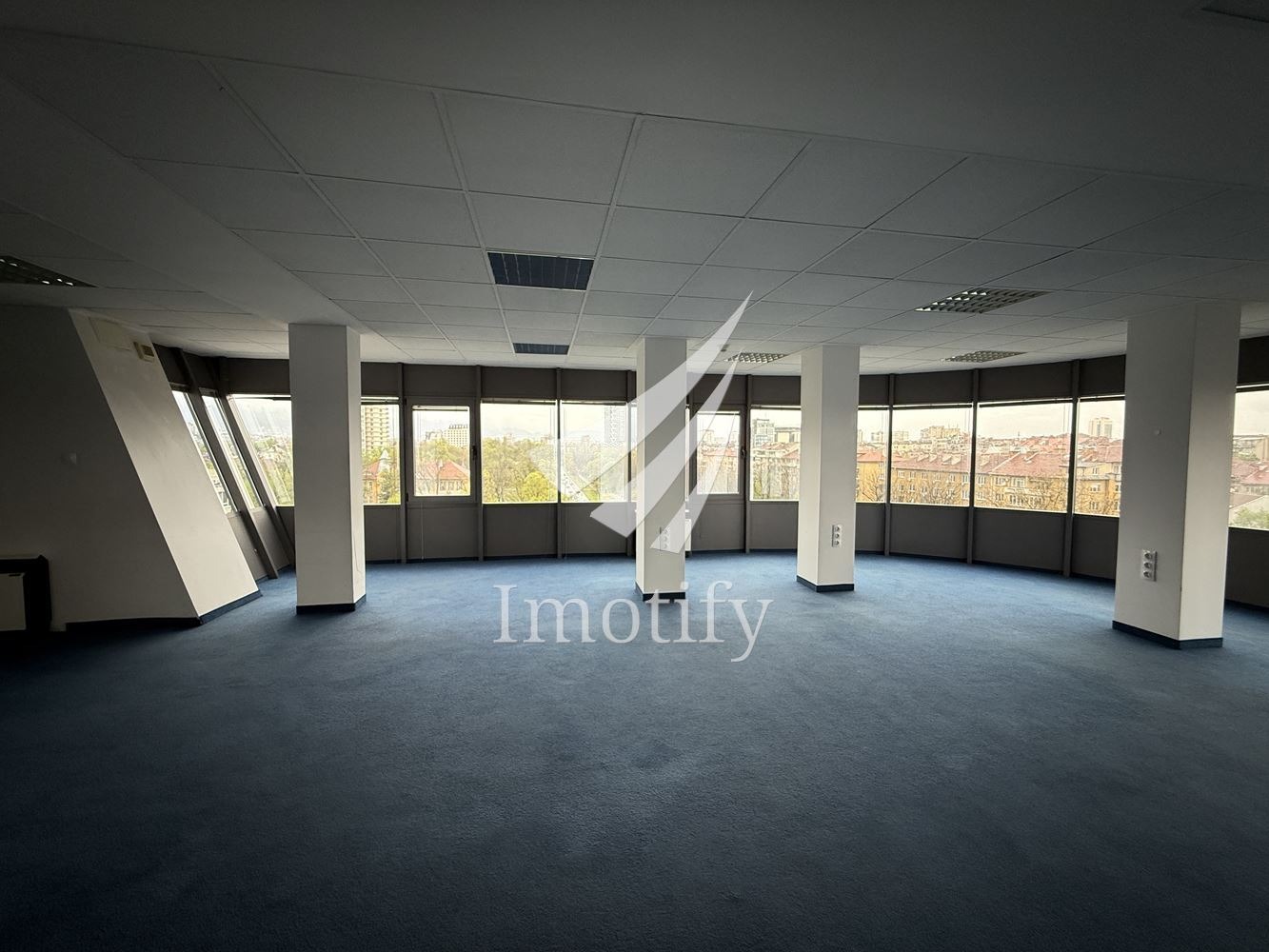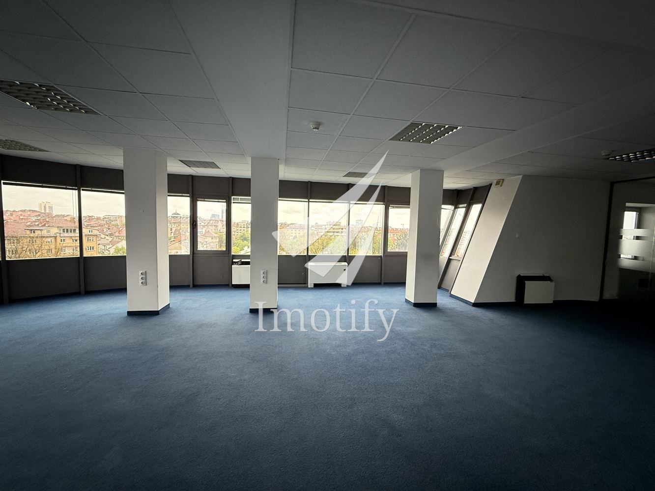 Imotify представя офис пространство в модерна бизнес сграда с отличителна архитектура и представителна визия.