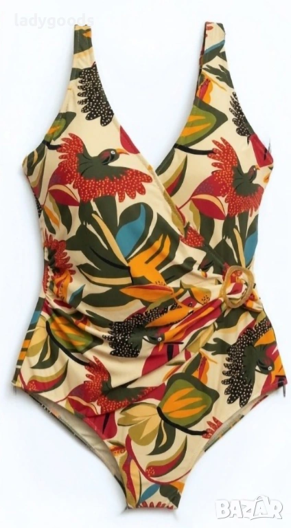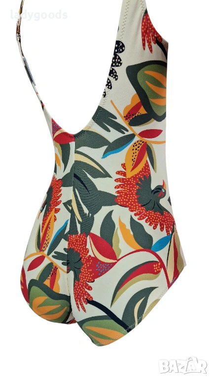 Цял бански костюм,с мека чашка.Чашката е В.На гърба е красиво изрязан,за по-пълен загар.Презрамките се регулират,и така може да коригирате леко дължината на банския.В чашките има леки подплънки,които ако не са ви необходими.могат да извадят! Налични размери - 42/S, 44/M, 46/L и 48/XL. Банският е подплатен и НЕ прозира! Повече наши обяви,може да намерите в Google на: ladygoods.bazar.bg
