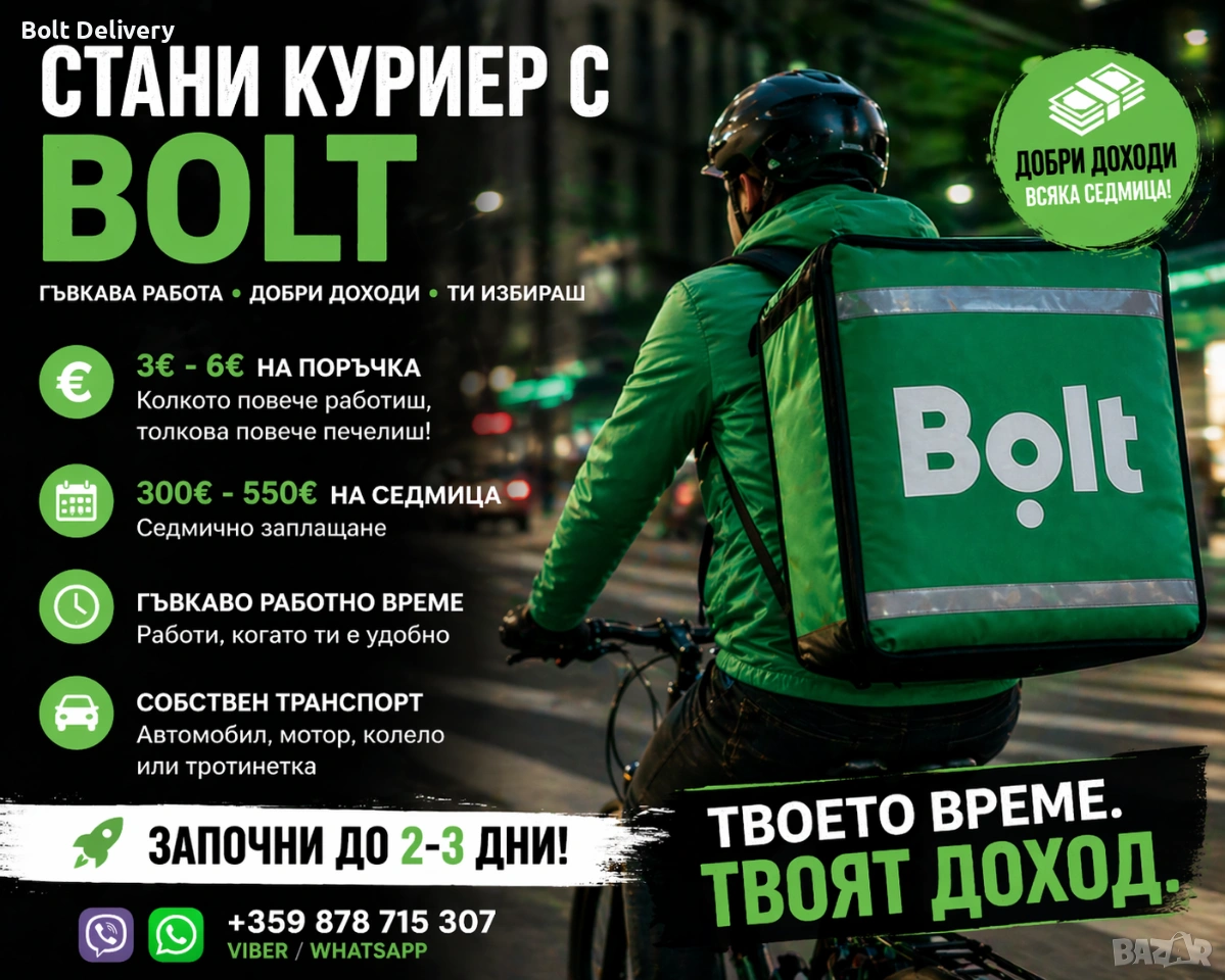 🚴♂️💼 Търсим куриери за Bolt – започни до 2-3 дни! 💸