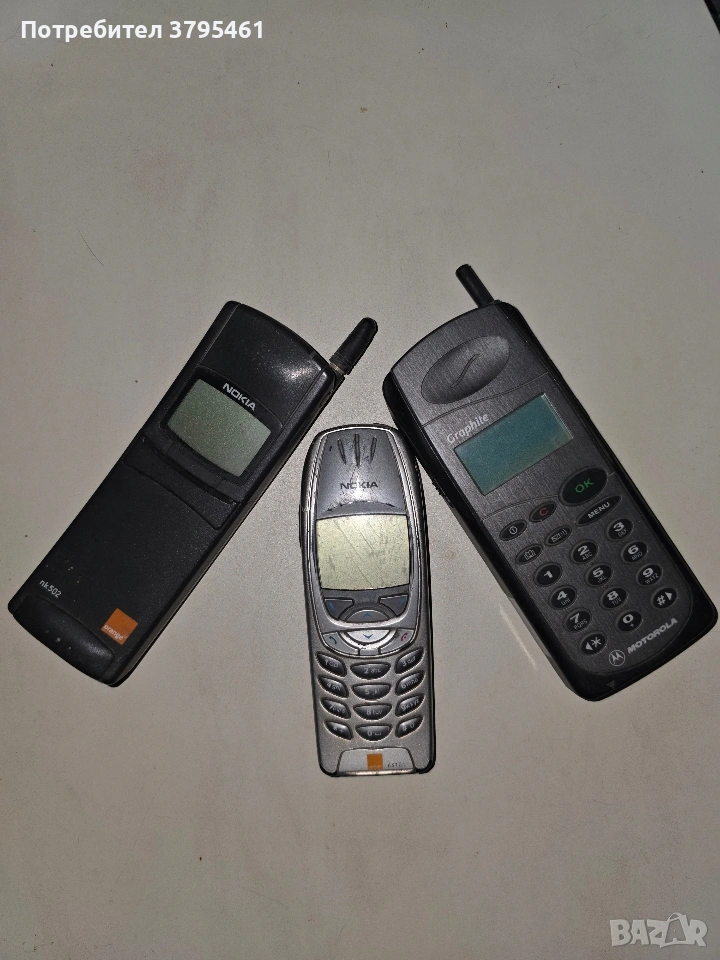 Продаваме спомени.Стари телефони,които никога вече нямя да излизат и всеки останъл цял и работещ е парче история.Имаме доста Нокии.От 1998,2000 и2002, 2003,4.Графит Моторола-изключителна класика-работещ.Самсунгот1999 c 50 ,а може и да бъркам за него.Още 6-7 модела от ерата преди touchscreen. Някои идват с оригинални зарядни и даже при някои има слушалки-чисто нови.Имаме Таблети от първите и четец(книга),Уокмени,дискмени,радиа Сони с батерии и зарядно,които не спират ако стане нещо,с което ни плашат.Правиме бартери и др.Пишете ако ви интересува