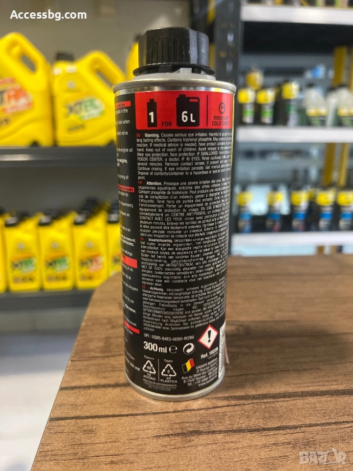 1 опаковка за ≤ 6 л = намалява шум и чукане на студен двигател, като се добавя след смяна на маслото.