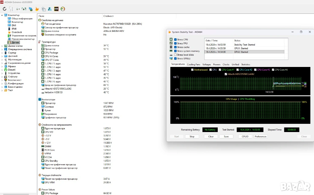 Има инсталиран Windows 11 Pro с всички необходими драйвери и програми за тестването на компонентите.