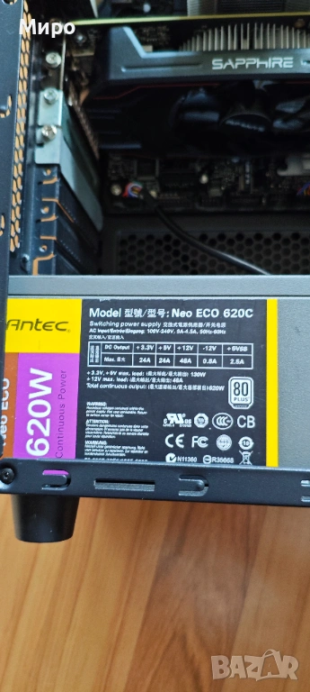 9. Power - 620W Antec NeoECO 620C, 80 PLUS BRONZE, 120 mm. FAN, екранирани кабели, защита от свръхток/пренапрежение/ниско напрежение/претоварване/късо съединение - 35 евро