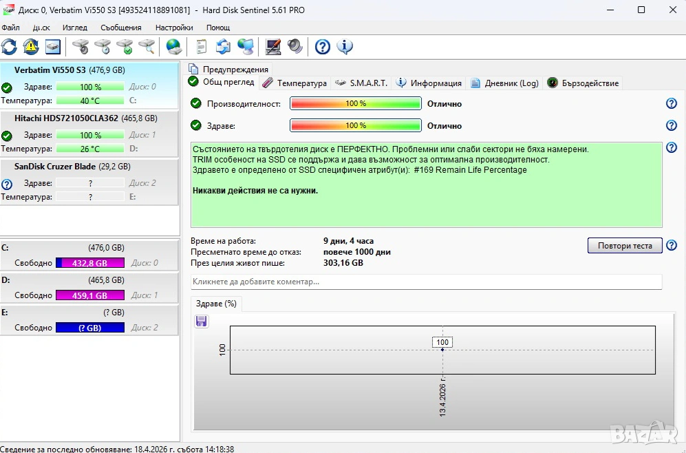 4. SSD - 512 Gb Verbatum Vi550 S3, Sata 3 - 60 евро (в гаранция до 05.10.2026г. към Емаг)