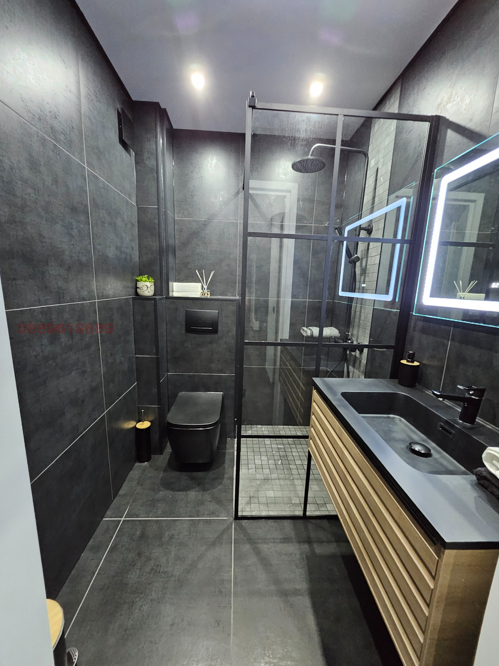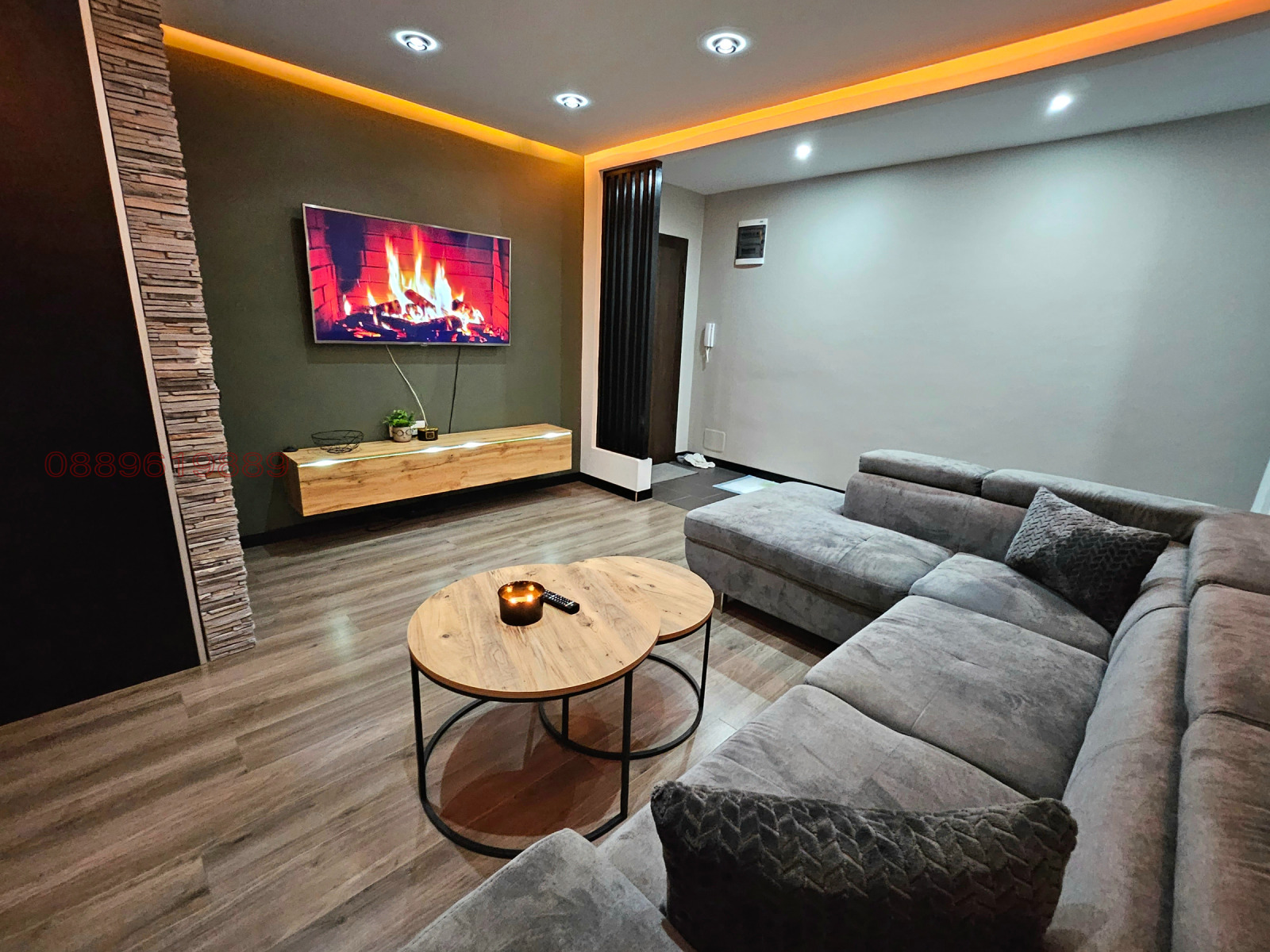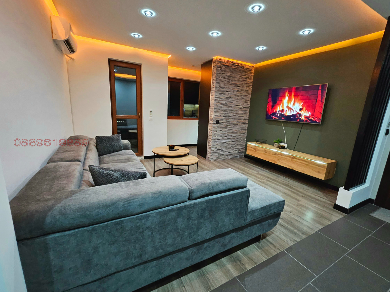Напълно обзаведен, с 2 климатика - подово отопление в банята, като всички ел.уреди (фурна, пералня, подово, бойлер и климатици) са със smart функция.