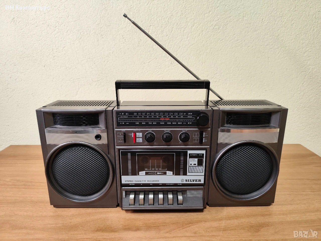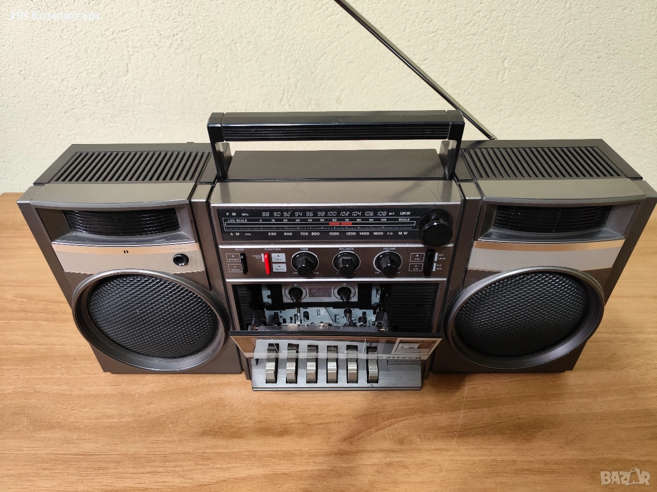 Японски радиокасетофон с много добър външен вид. Работи и на радио и на касети, минал е профилактика касетния механизъм. Продава се със захранващ кабел.