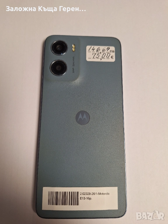 Motorola E13, снимка 1 - Motorola - 54269764 Motorola E13, снимка 2 - Motorola - 54269764 Motorola E13, снимка 3 - Motorola - 54269764 Motorola E13, снимка 4 - Motorola - 54269764 1/4
