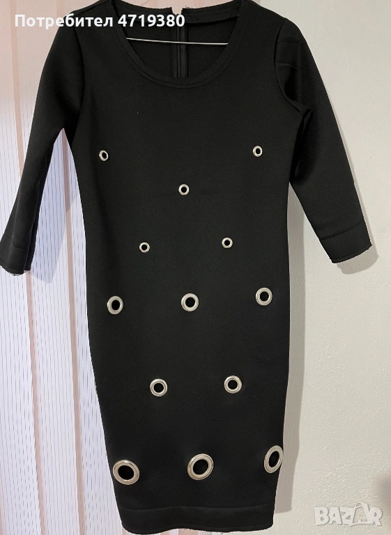 Роклята е носена няколко пъти, но изключително запазена. Размера е S/M. Дължината и е почти до коленете. Има интересни сребърни елементи, под които е прикрепен плат и не се вижда през тях.