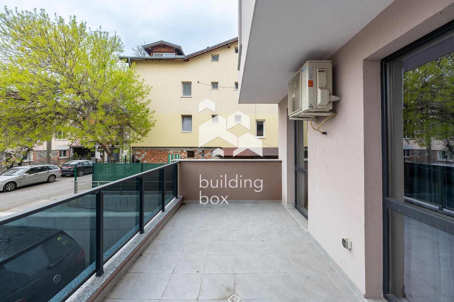 - ПАРКИРАНЕ: Към имота може да се закупи паркомясто на цена от 12 000 евро, което е точно пред верандата на апартамента.