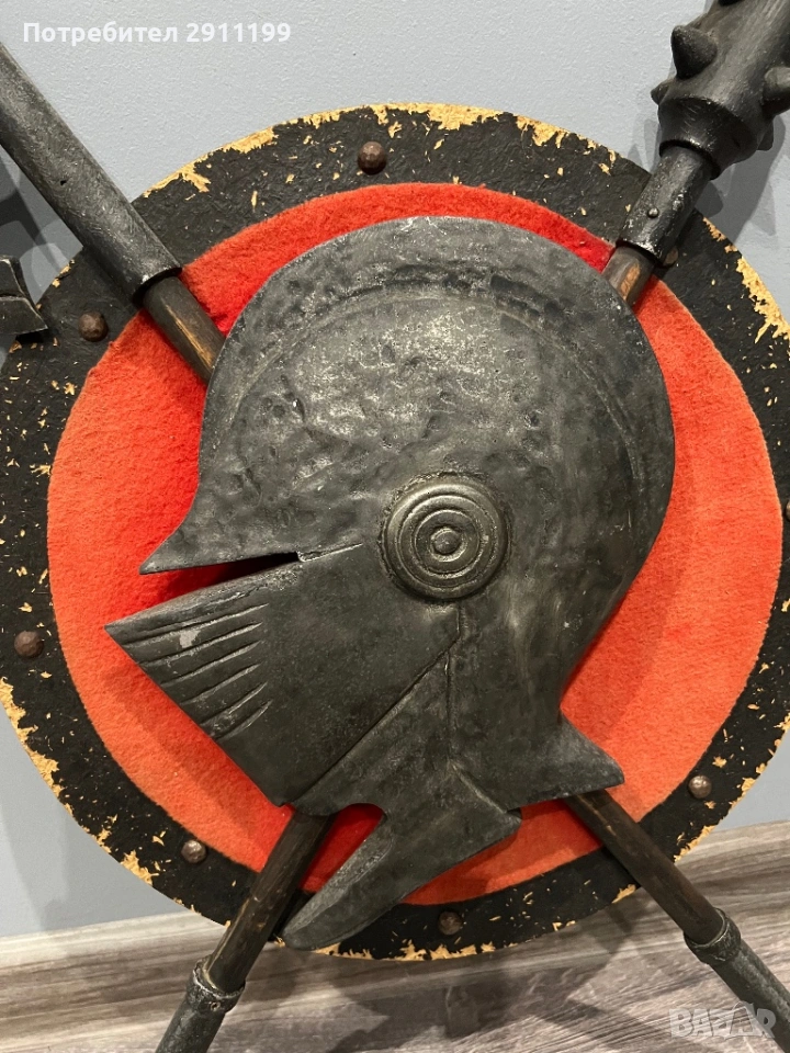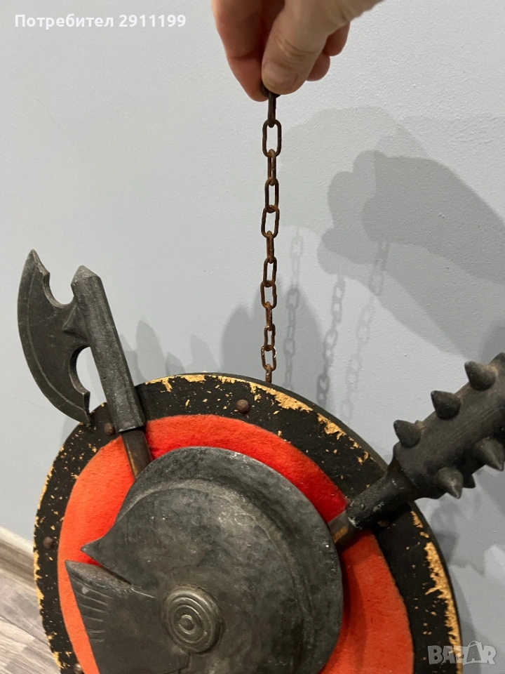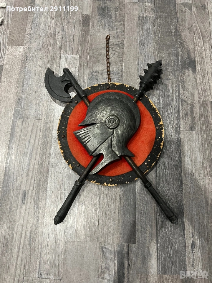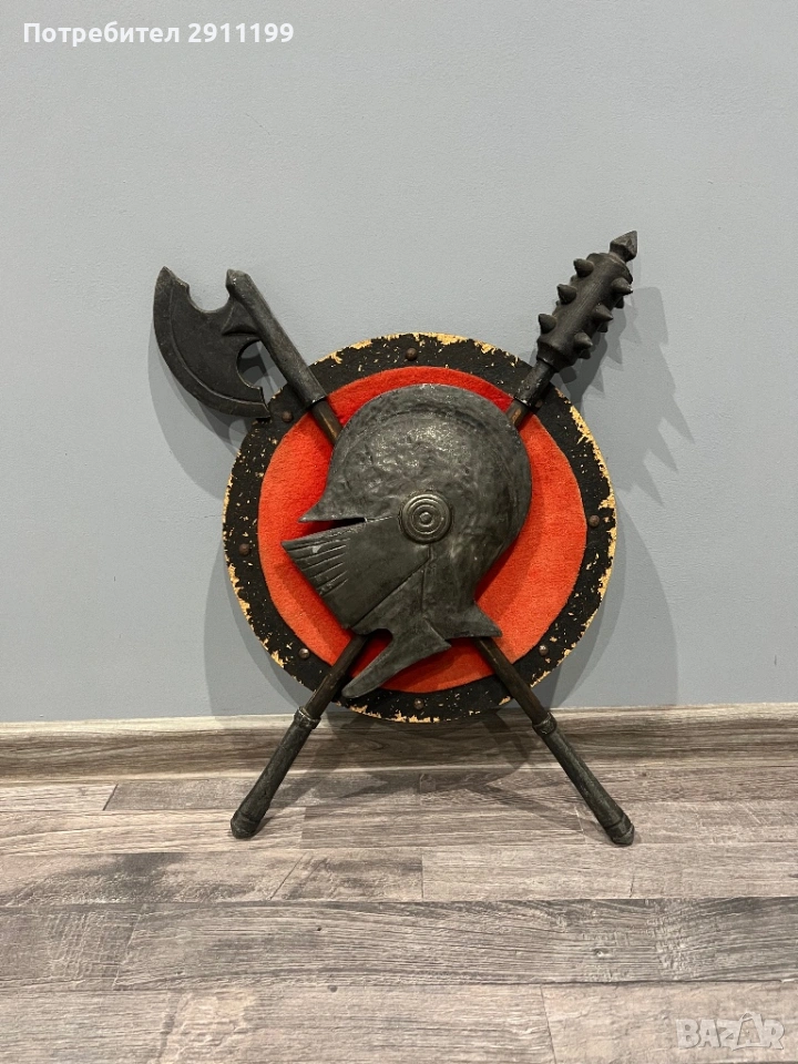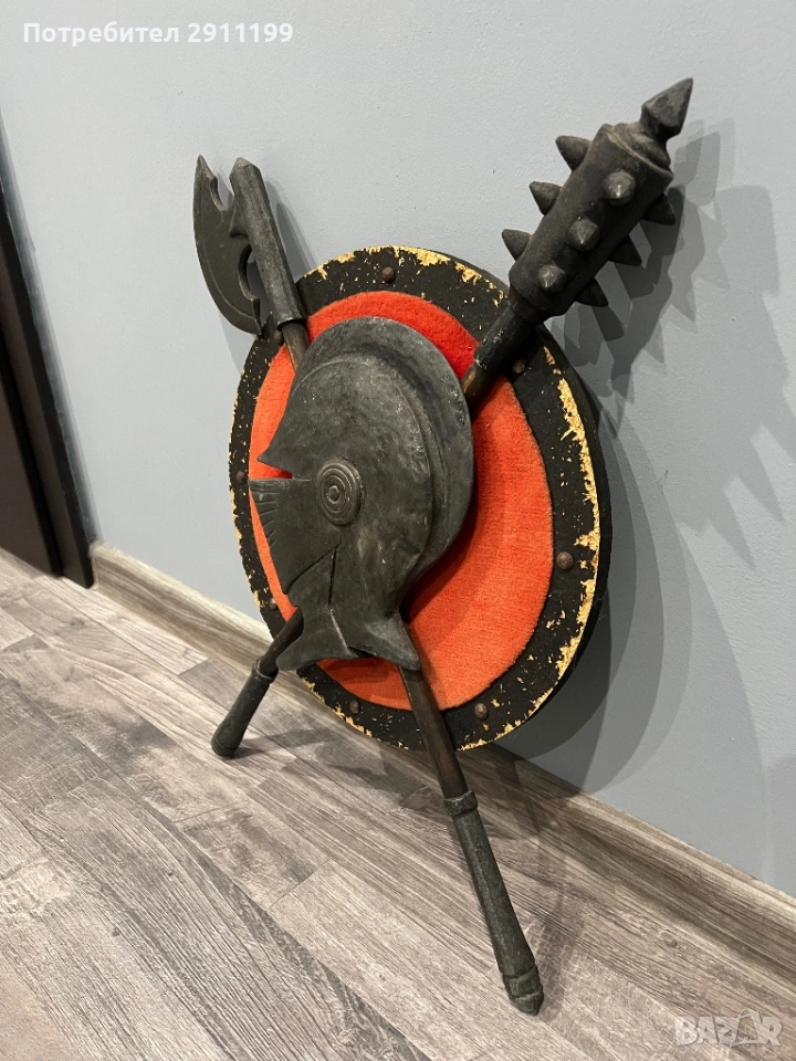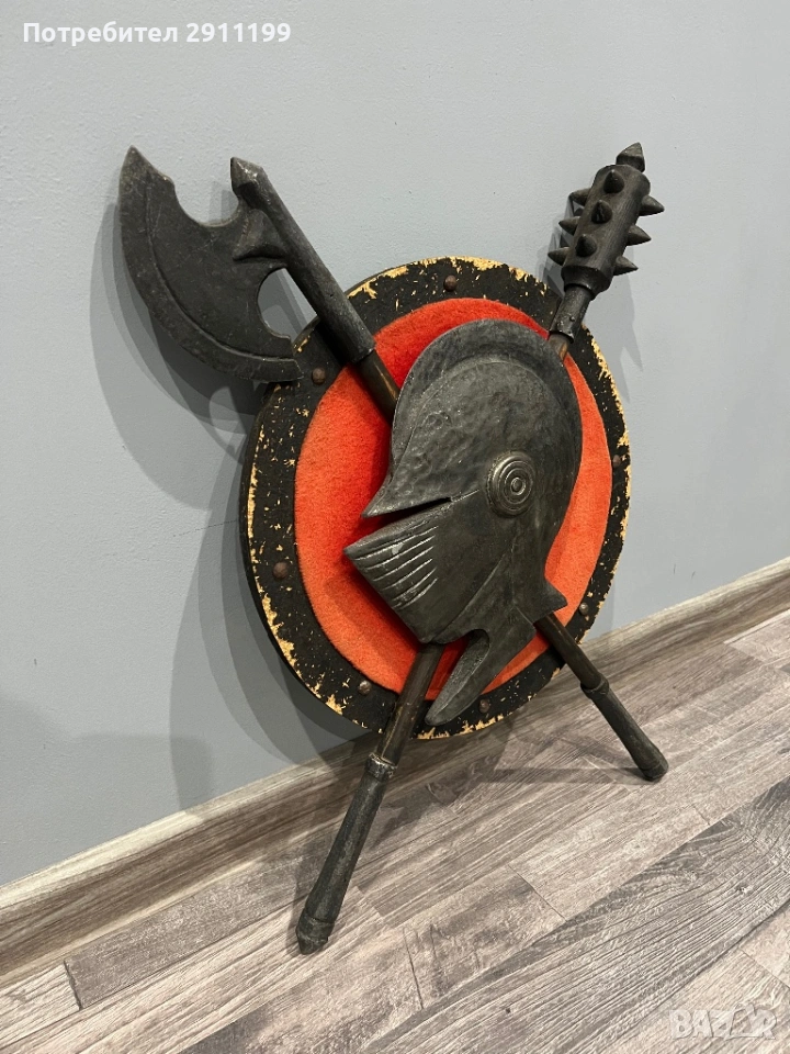 антикварно пано с боен боздуган, брадва