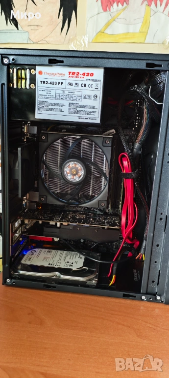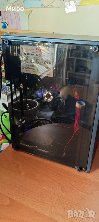 11. Power - 420 W Thermaltake TR2, 120 mm. FAN, екранирани кабели, 24-pin за дъното x1, 4-pin (12V) за процесора x1, 4-pin за хард дискове, DVD устройства и други x8, 4-pin за Floppy диск x2, 5-pin SATA Connector за хард диск x2, 6-pin PCI Express Connector x1. Функция PFC, подобрена енергийна ефективност и намалено токово натоварване на системите за захранване с променлив ток. Нискошумен 12-сантиметров вентилатор и корпус с огледален ефект. Защити срещу входна защита, претоварване, пренапрежение, късо съединение и работа без товар