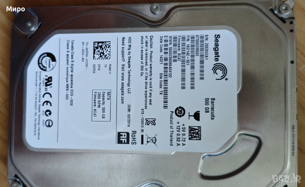 6. HDD - 500 GB Hitachi ST500DM002-1BD141, 7200 Rpm, Sata 3